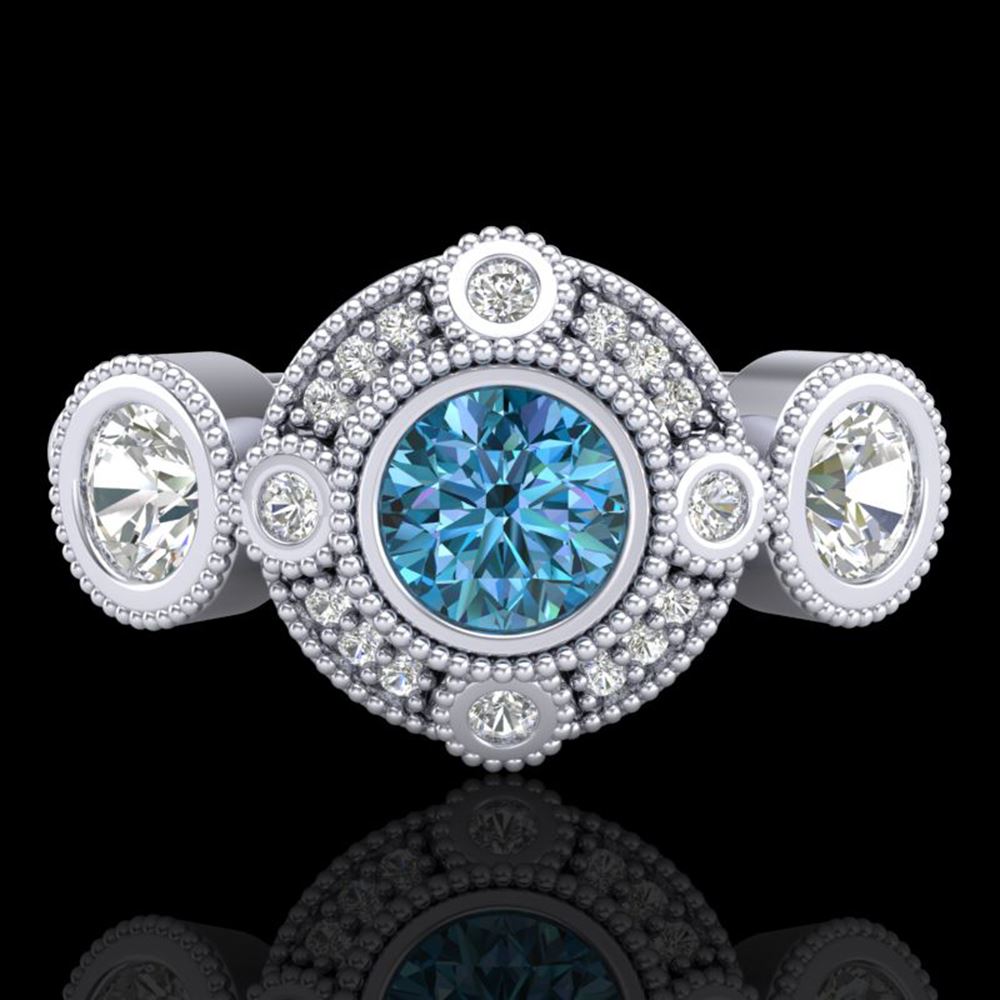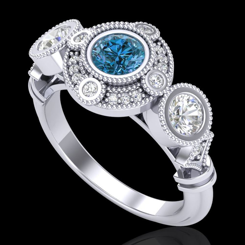 REF-218M2G - SKU: 37712 ---- 1.51 ctw Intense Blue Diamond Art Deco 3 Stone Ring 18k White Gold