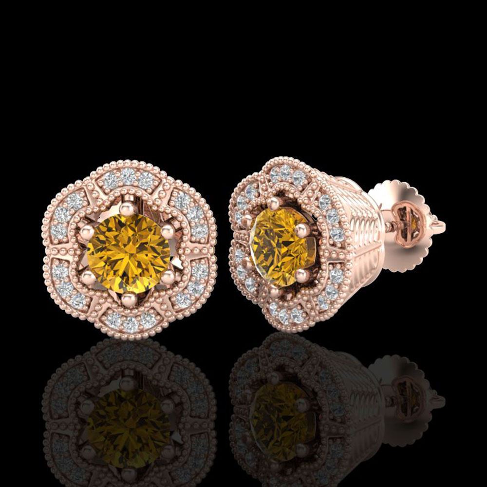 REF-247G3W - SKU: 37967 ---- 1.51 ctw Intense Fancy Yellow Diamond Art Deco Earrings 18k Rose Gold