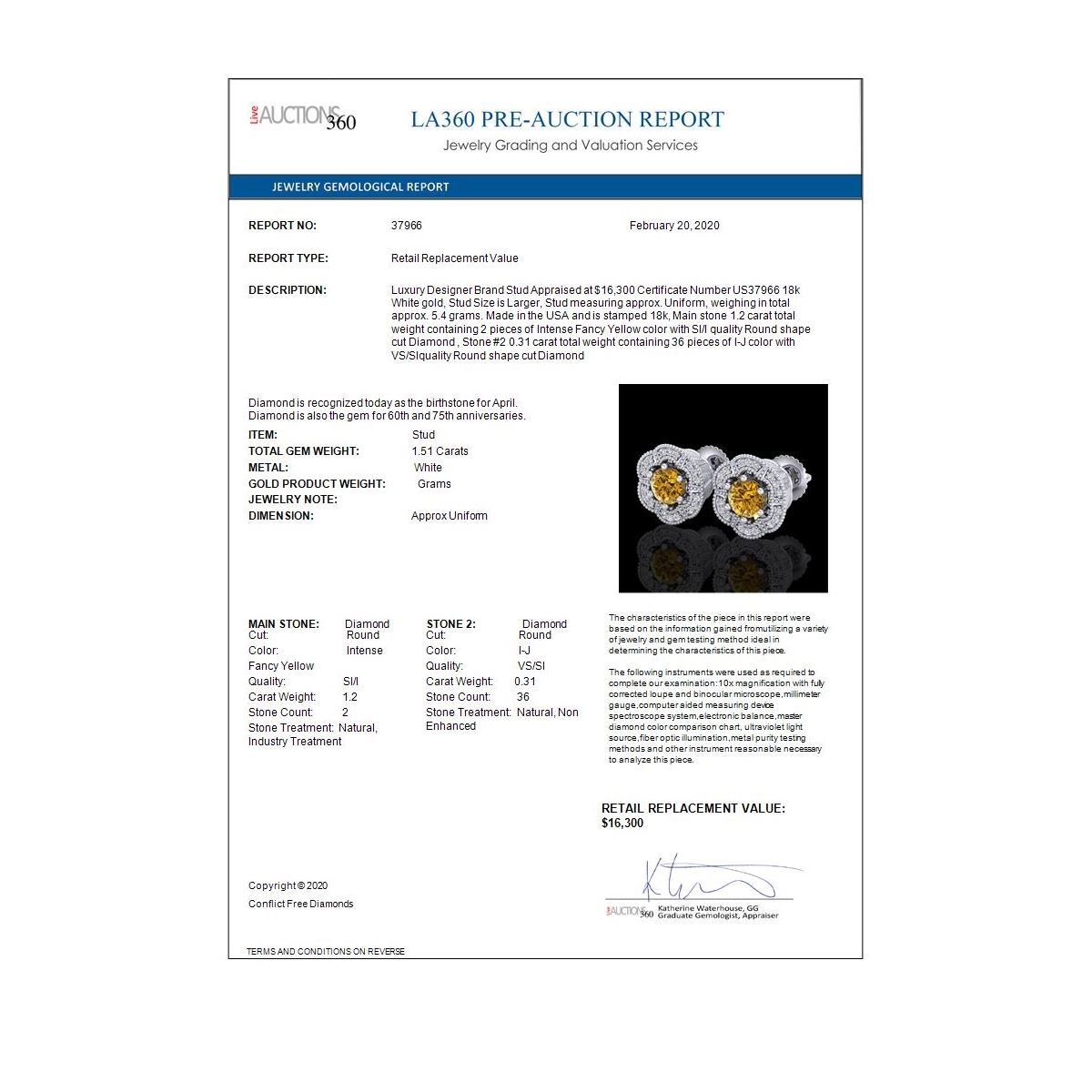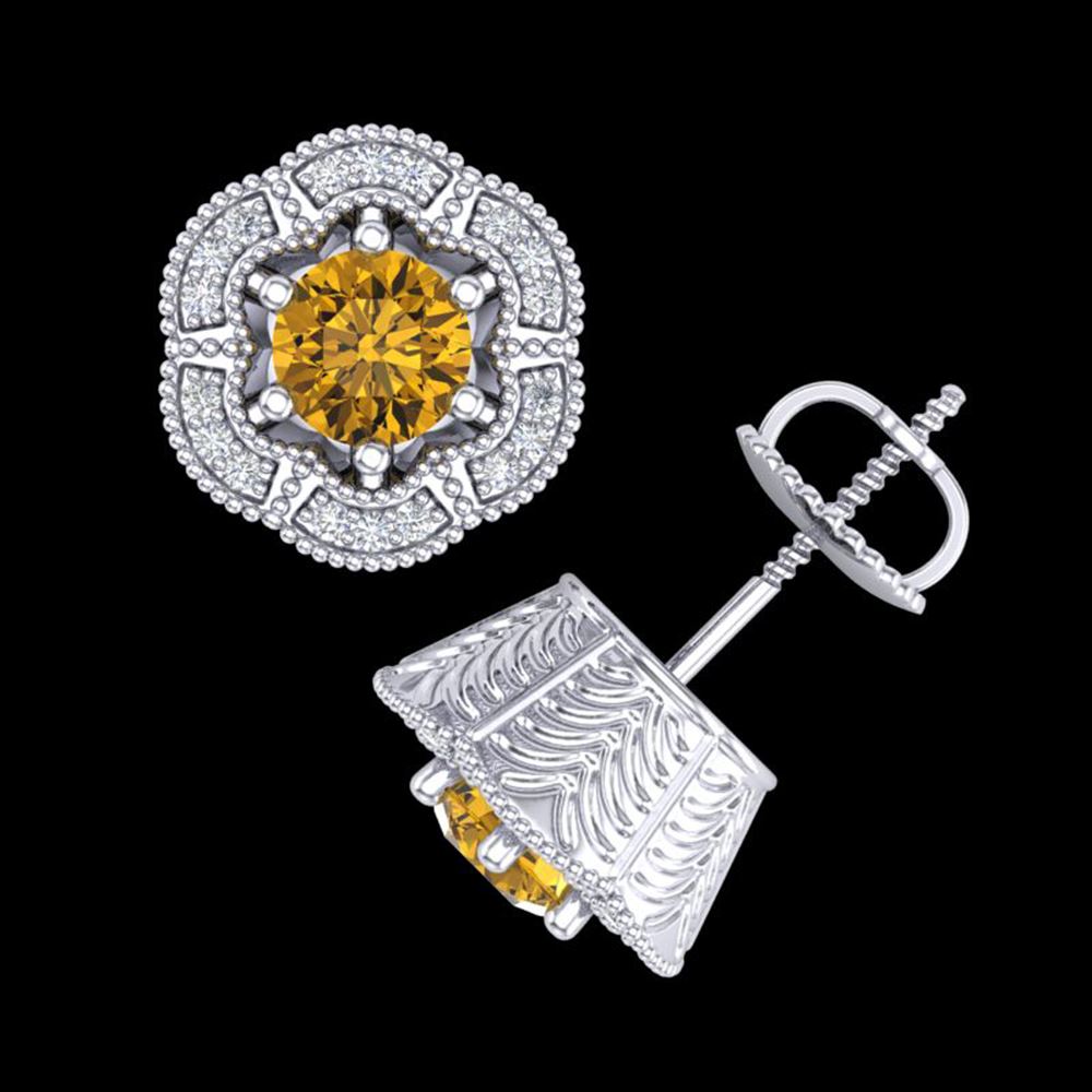 REF-247F3M - SKU: 37966 ---- 1.51 ctw Intense Fancy Yellow Diamond Art Deco Earrings 18k White Gold