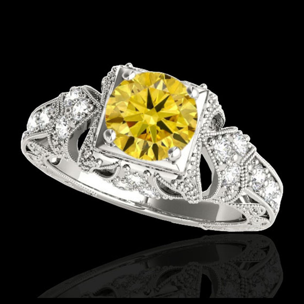 1.51 ctw Intense Fancy Yellow Diamond Art Deco Ring 18K Rose Gold