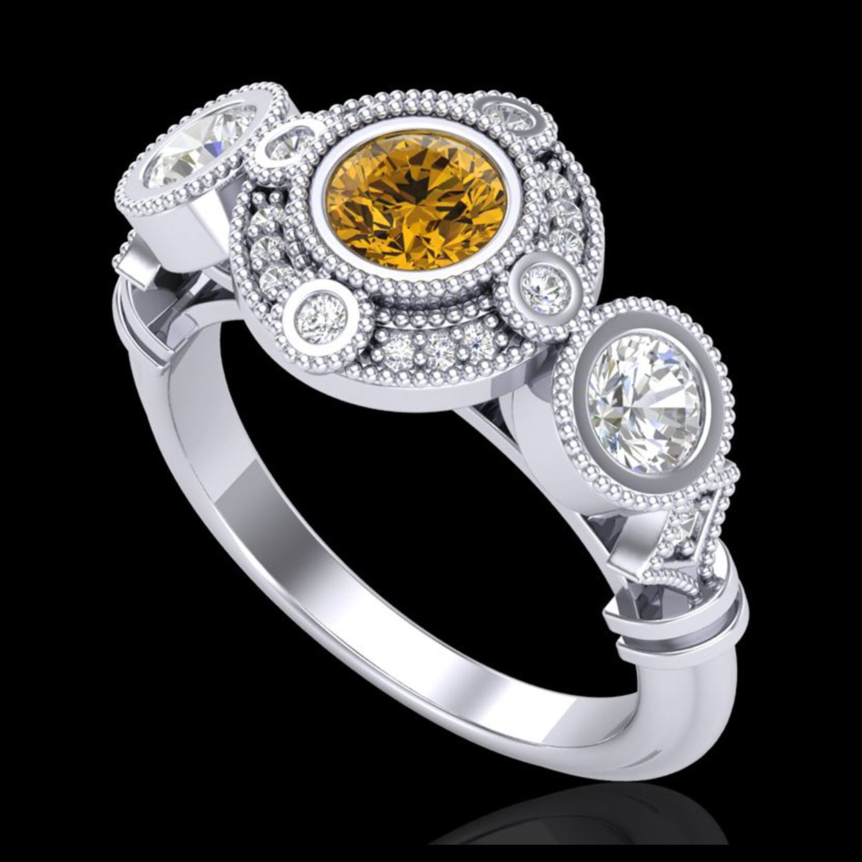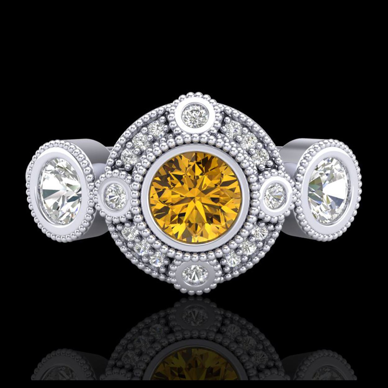 1.51 ctw Intense Fancy Yellow Diamond Art Deco Ring 18K White Gold