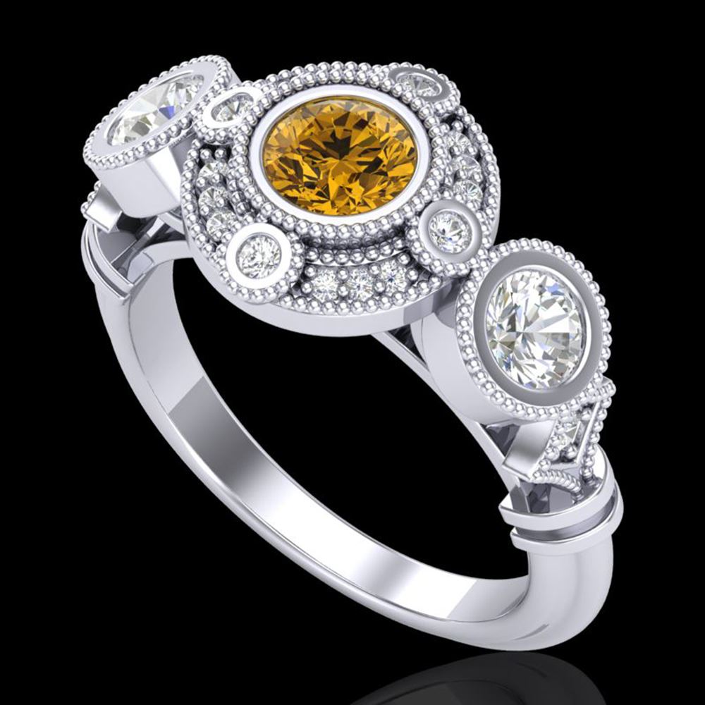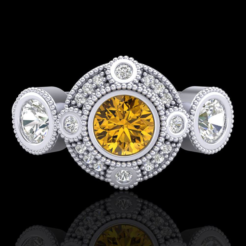 REF-218R2K - SKU: 37714 ---- 1.51 ctw Intense Fancy Yellow Diamond Art Deco Ring 18k White Gold