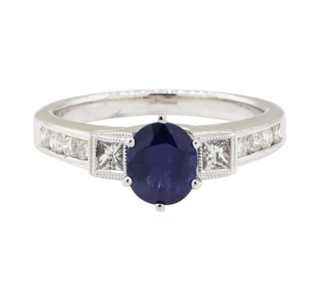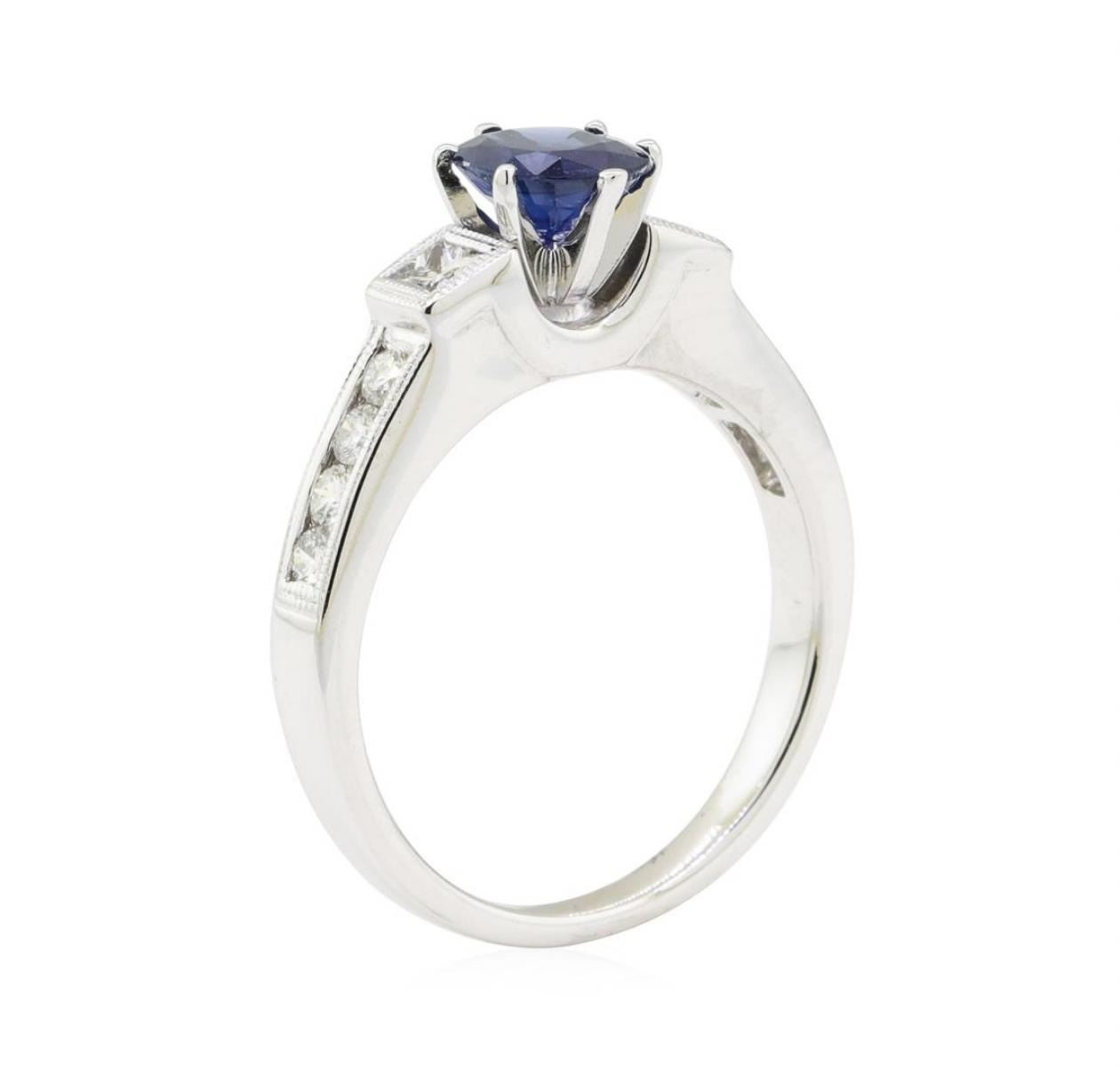 One ring featuring: 18KT white gold weighing 5.5 grams containing one oval sapphire weighing 1.01ct and diamonds weighing 0.50 ctw.