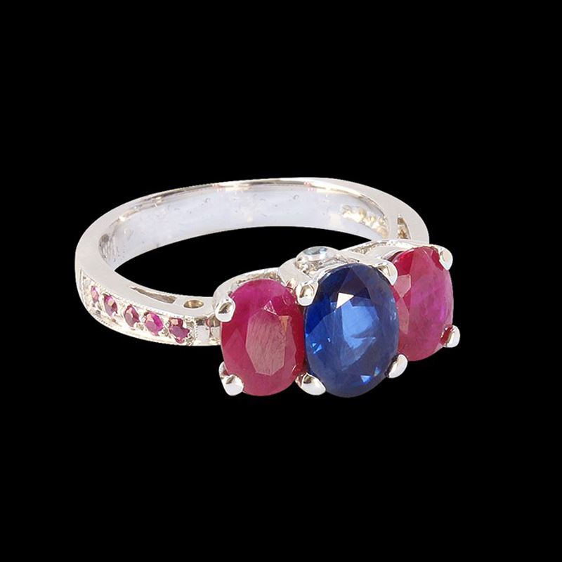 14K WHITE GOLD RING:5.10GRAMS/BLUE DIAMOND:0.03CT/PINK SAPPHIRE:0.13CT/BLUE SAPPHIRE:1.51CT/RUBY:2.11CT/#GVR1052/ No Lead or Glass filling