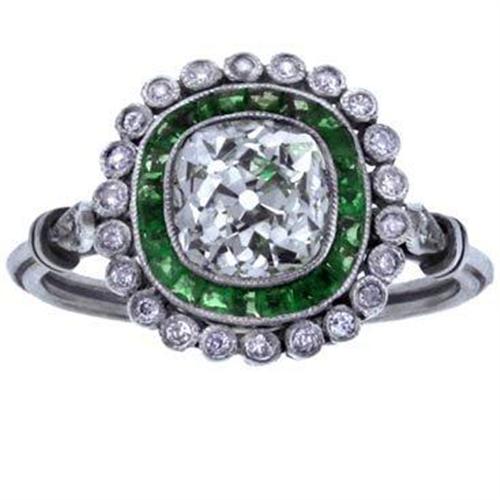 <tr><td>Title:1.51ct Cushion Cut Diamond & Emerald Antique Style</td></tr>