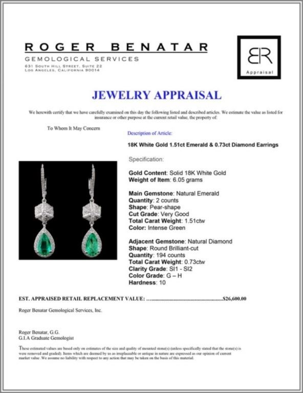 Regarding Appraised Jewelry and Loose Stones - Auctionfarm sends them out to a third party for Retail Replacement Value Appraisals, which are the most common. These types of evaluations are written for insurance needs. This would be the cost to replace the jewelry with an item of equal quality and kind, considered to be the current market price or the replacement value. This type of appraisal is done to protect you in the event of damage or loss of a valuable item. Our appraisals are conducted by independent 3rd Party appraisal firms that utilizes Certified GIA Gemologist. Appraisals should be used for verification of gemstone and/or metal weight, size, and grade only, not actual value. Appraisal value should be considered for insurance purposes only, not actual value, as price varies greatly from retail locations thru out the world. Items should not be purchased with the expectation to resell for appraisal price, or for profit.