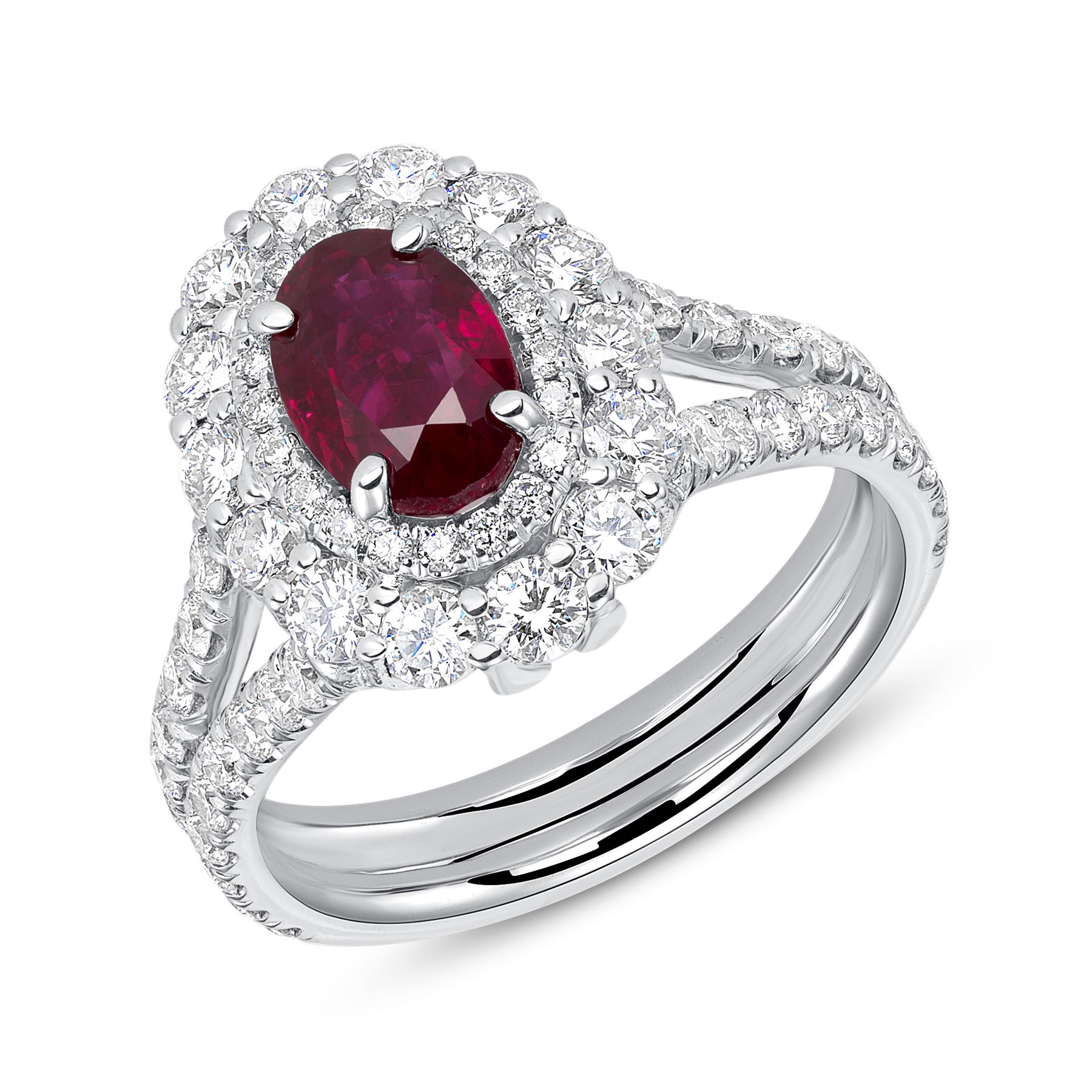 18K White Gold Ring 6.51gm / Diamond 1.51ct / NATURAL Ruby 1.51ct