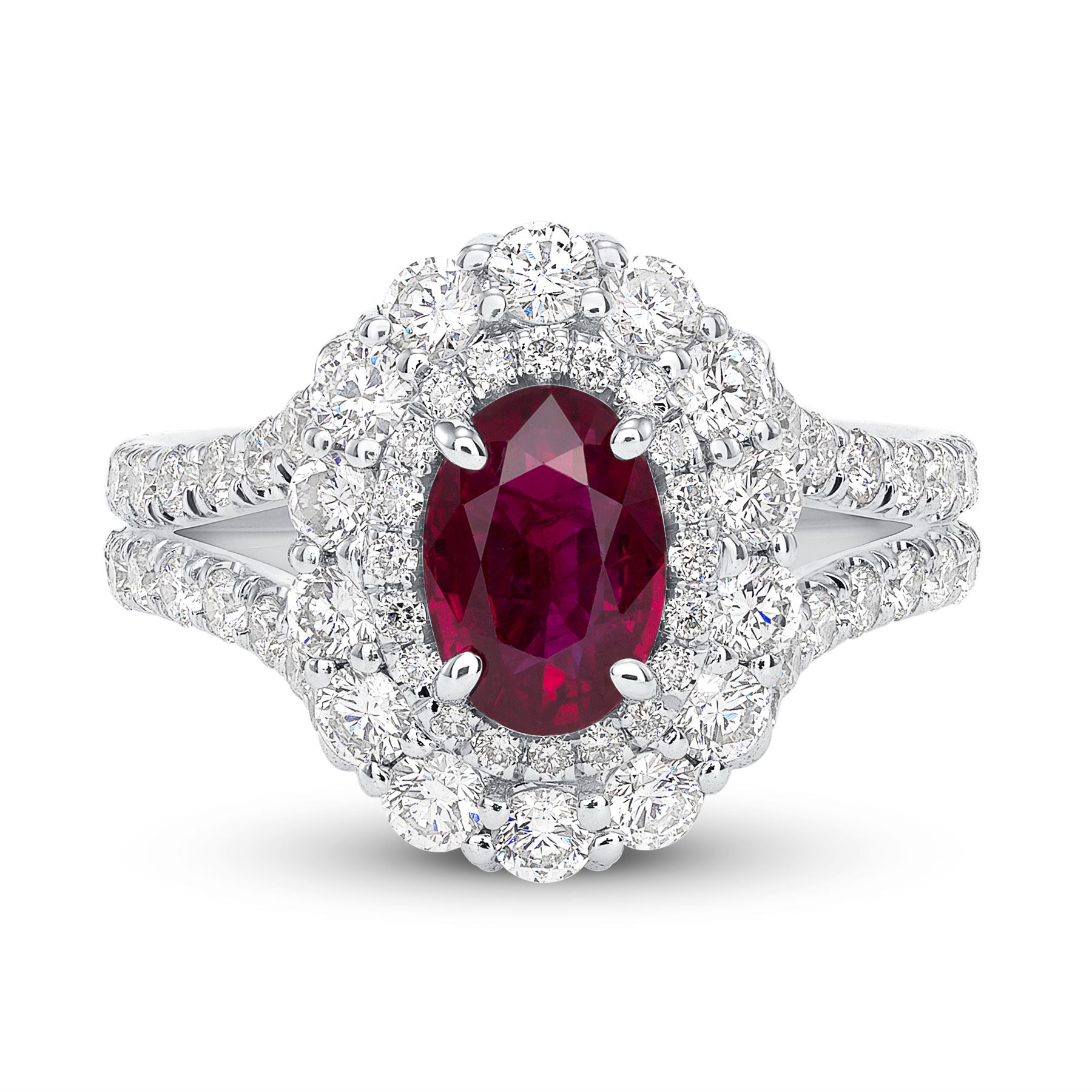 18K White Gold Ring 6.51gm / Diamond 1.51ct / NATURAL Ruby 1.51ct
