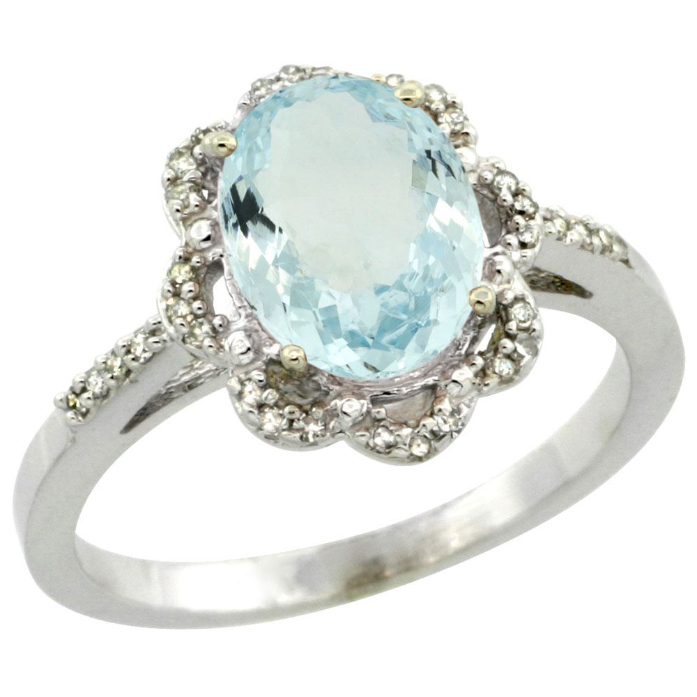 REF-42R5H - SKU: SC-CW912105 ---- 1.52 CTW Aquamarine & Diamond Ring 10K White Gold