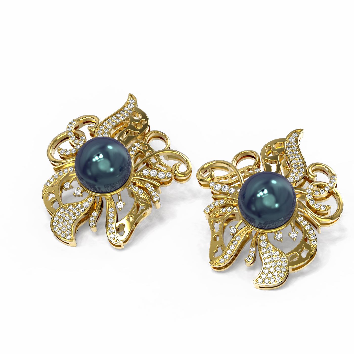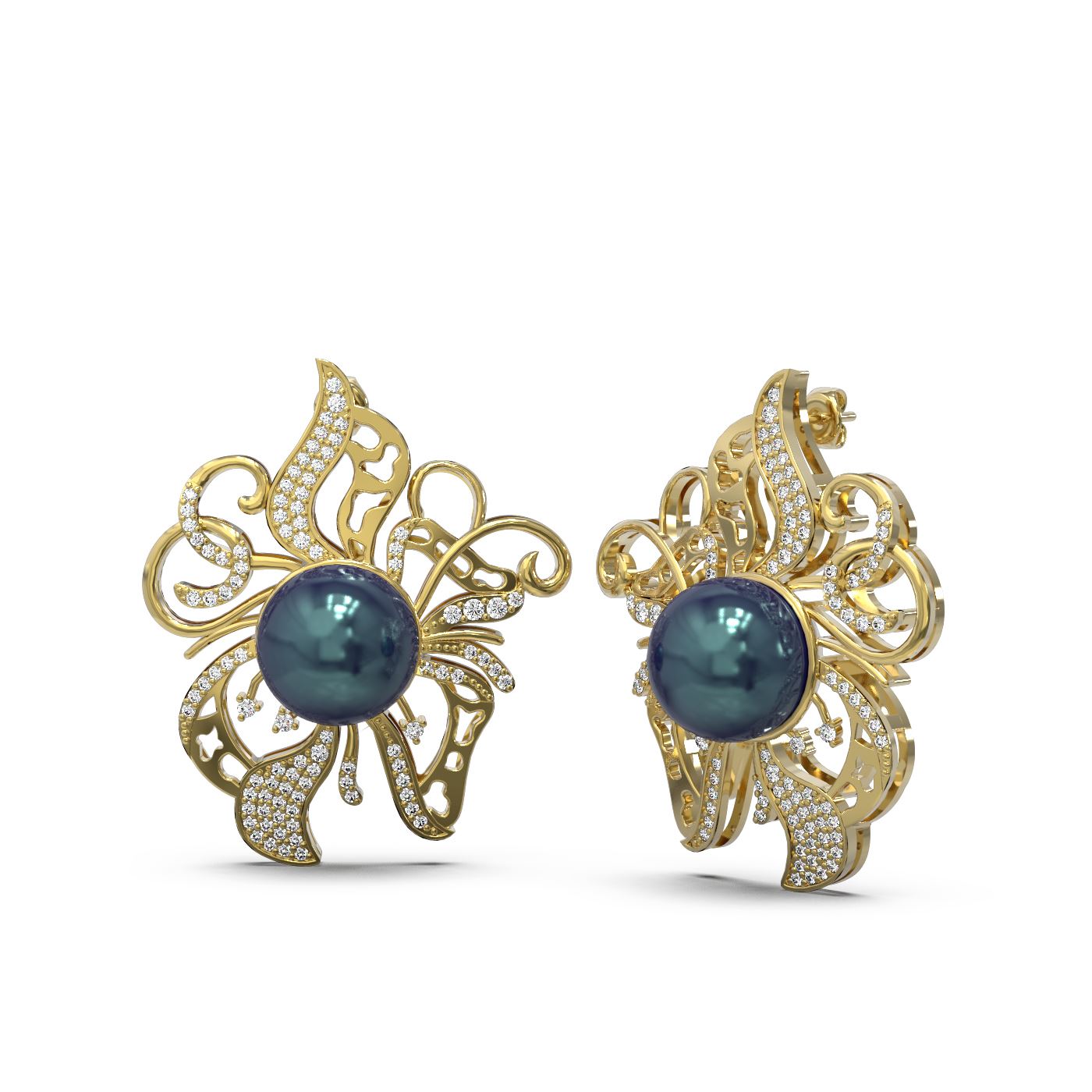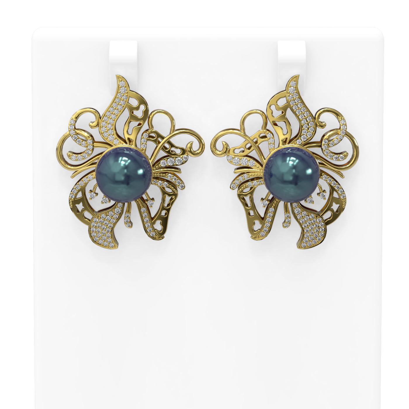 REF-217G8W - SKU: 55351 ---- 1.52 ctw Diamond & Pearl Earrings 18K Yellow Gold