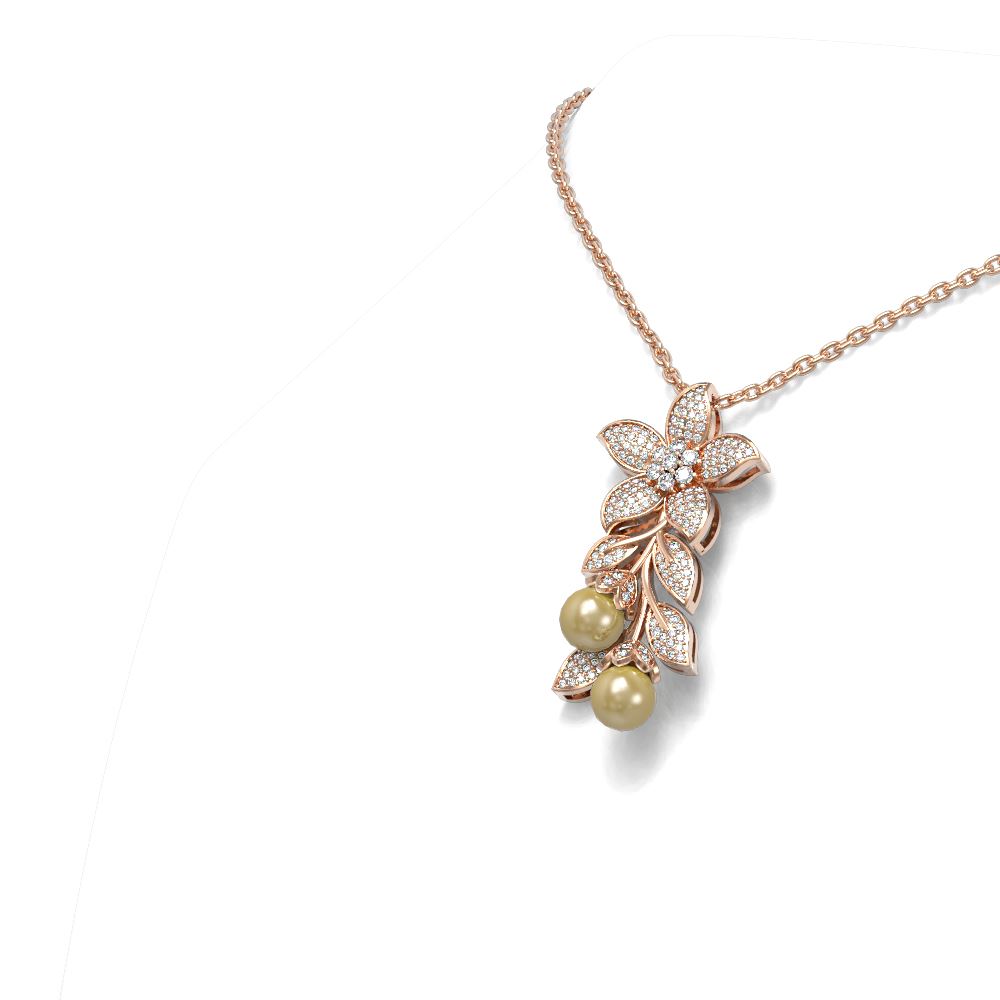 REF-235X6A - SKU: 54858 ---- 1.52 ctw Diamond & Pearl Necklace 18K Rose Gold