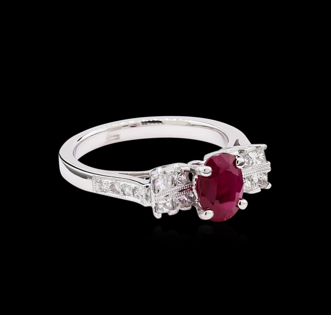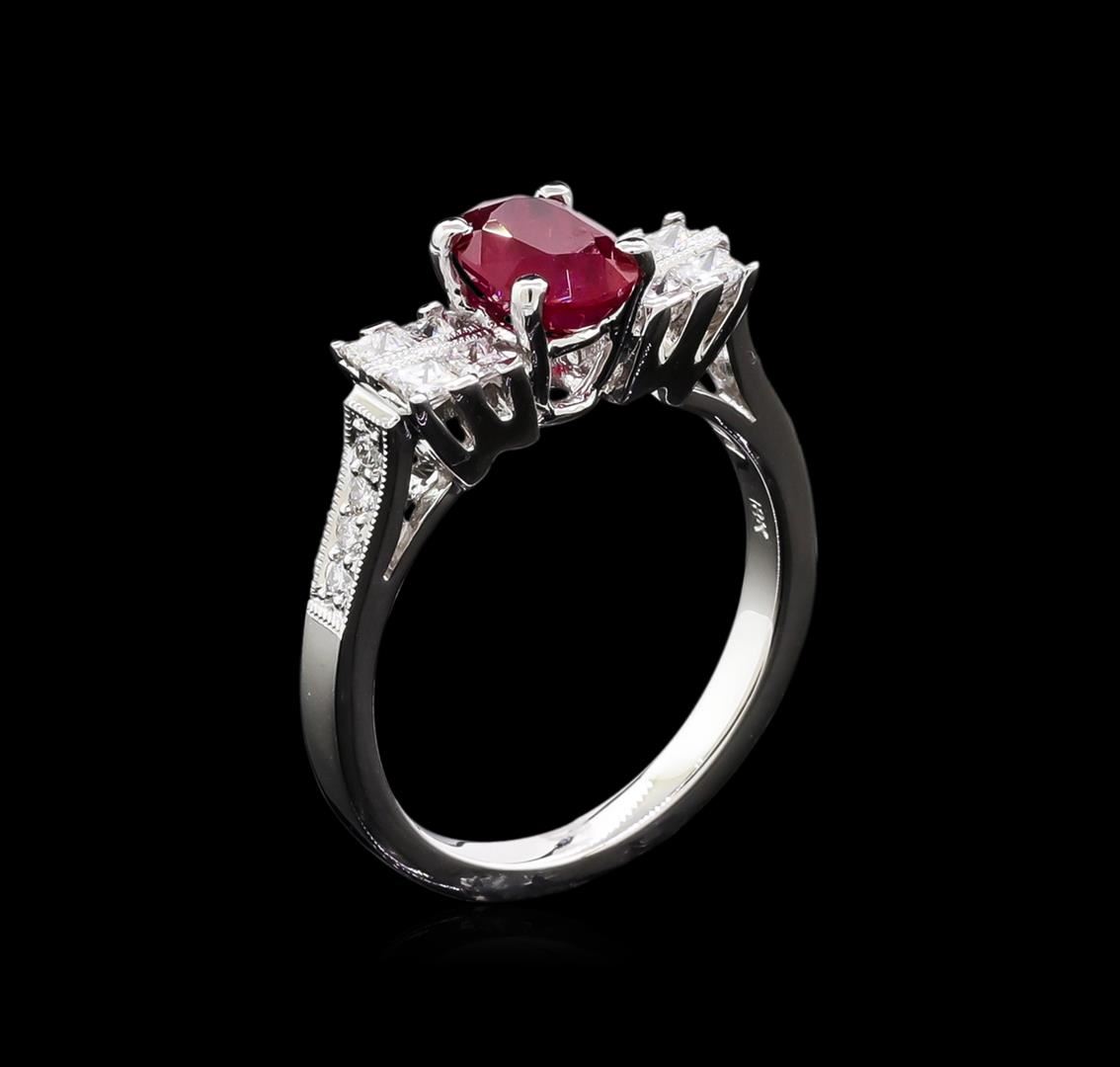 One ring featuring: 18KT white gold weighing 5.10 grams containing one ruby with a total weight of 1.52ct and side diamonds with a total weight of 0.56ct.