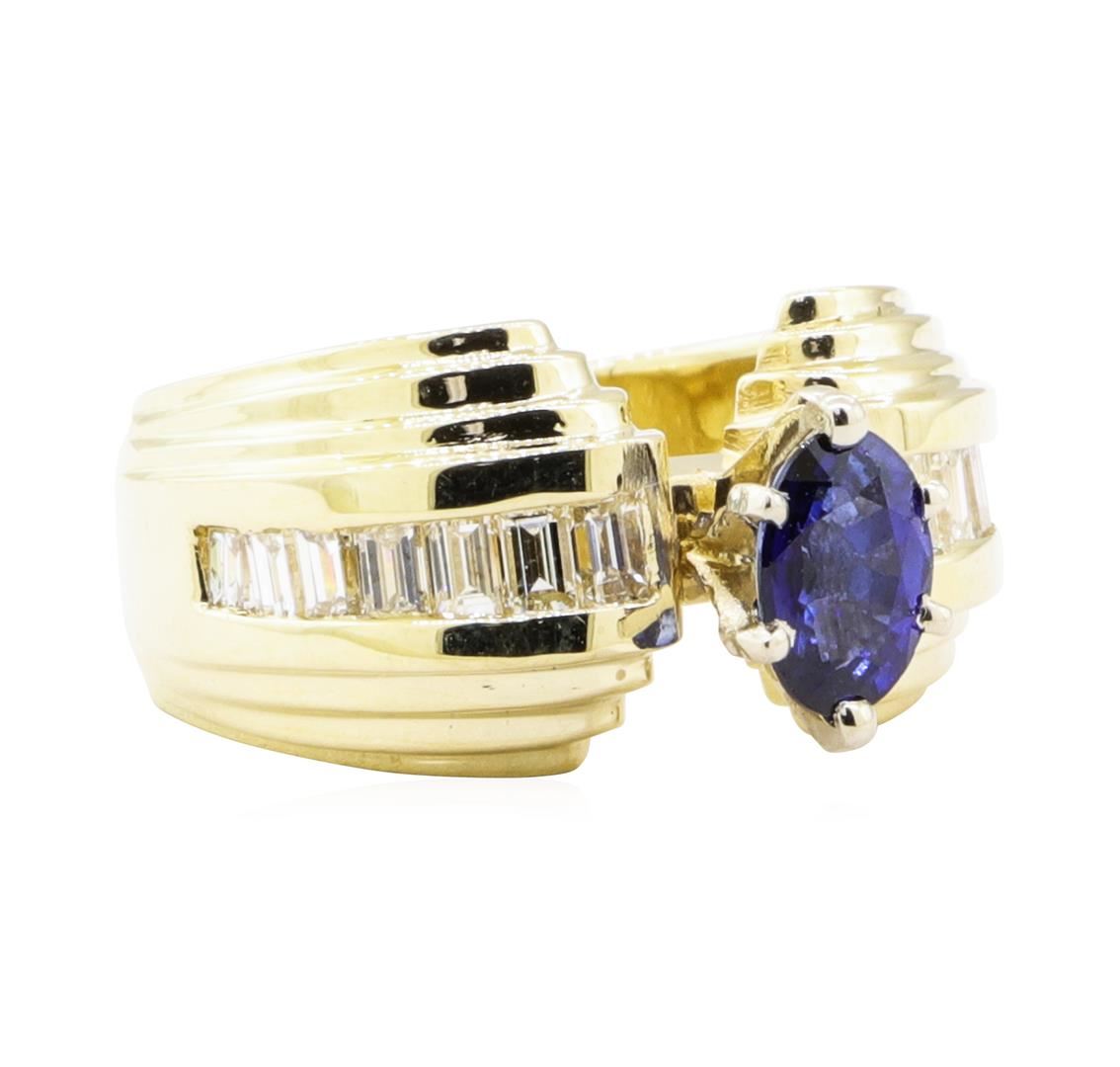 One ring featuring: 14KT yellow gold weighing 8.4 grams containing one sapphire weighing 0.92ct and diamonds weighing 0.60 ctw.