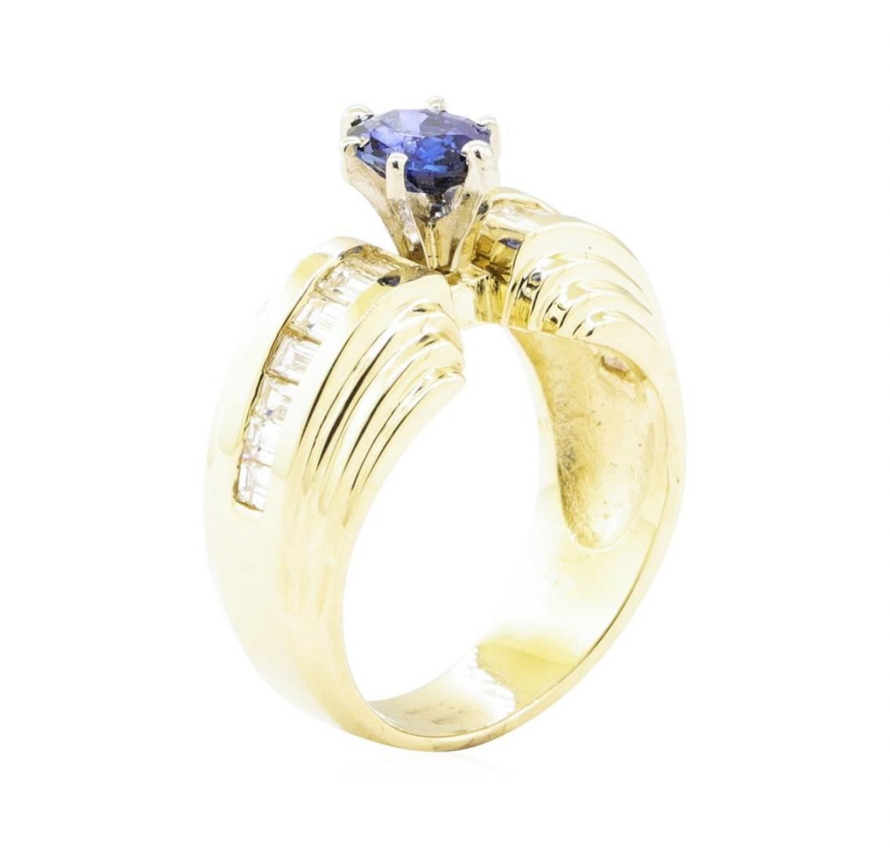 One ring featuring: 14KT yellow gold weighing 8.4 grams containing one sapphire weighing 0.92ct and diamonds weighing 0.60 ctw.