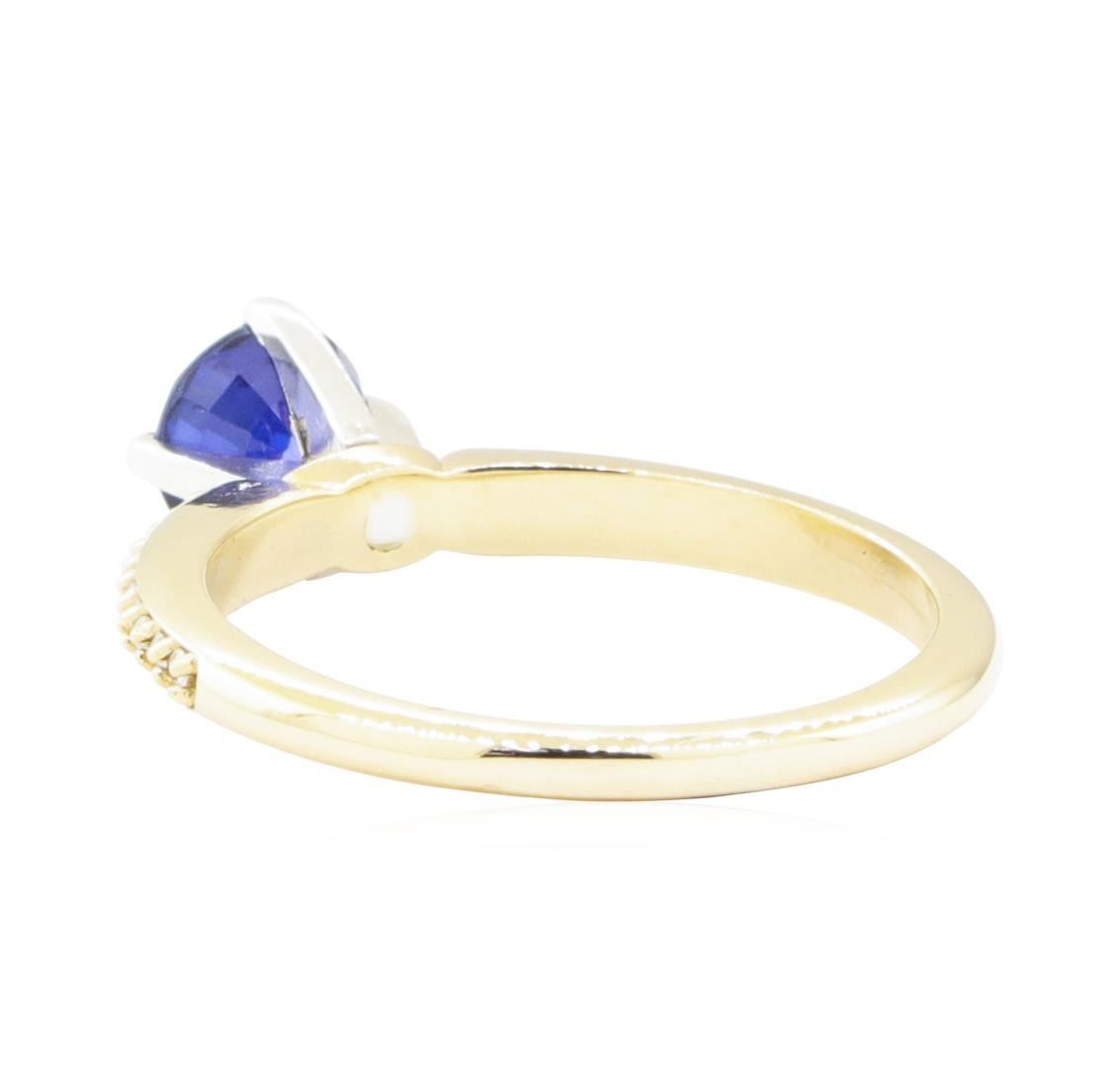 One ring featuring: 14KT yellow gold weighing 3.0 grams containing one sapphire weighing 1.32ct and diamonds weighing 0.20 ctw.