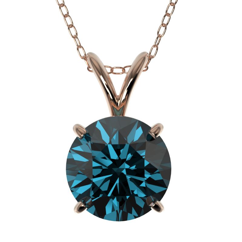 REF-202T5M -36803 ---- 1.53 CTW Certified Intense Blue SI Diamond Solitaire Necklace 10K Rose Gold ---- Luxury Designer Brand Necklace Appraised at $16,200 Certificate Number US36803 10k Rose gold, Necklace Size is 16 Incehs, Necklace measuring approx. Uniform, weighing in total approx. 2.2 grams. Made in the USA and is stamped 10k, Main stone 1.53 carat total weight containing 1 pieces of Intense Fancy Blue color with SI quality Round shape cut Diamond , Stone #2 carat total weight containing pieces of color with quality shape cut