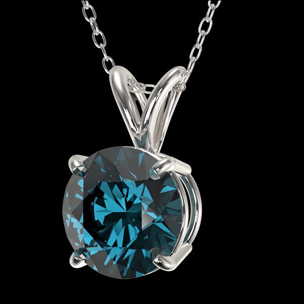 REF-202X5T -36802 ---- 1.53 CTW Certified Intense Blue SI Diamond Solitaire Necklace 10K White Gold ---- Luxury Designer Brand Necklace Appraised at $16,200 Certificate Number US36802 10k White gold, Necklace Size is 16 Incehs, Necklace measuring approx. Uniform, weighing in total approx. 2.2 grams. Made in the USA and is stamped 10k, Main stone 1.53 carat total weight containing 1 pieces of Intense Fancy Blue color with SI quality Round shape cut Diamond , Stone #2 carat total weight containing pieces of color with quality shape cut