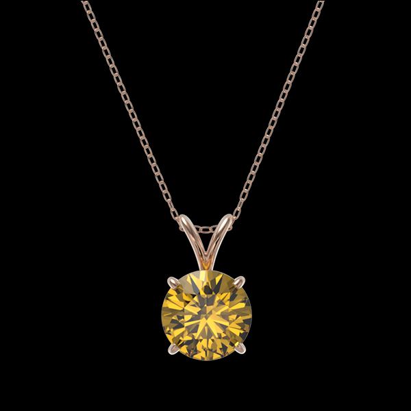 REF-285W2F -36807 ---- 1.53 CTW Certified Intense Yellow SI Diamond Solitaire Necklace 10K Rose Gold ---- Luxury Designer Brand Necklace Appraised at $20,900 Certificate Number US36807 10k Rose gold, Necklace Size is 16 Incehs, Necklace measuring approx. Uniform, weighing in total approx. 2.2 grams. Made in the USA and is stamped 10k, Main stone 1.53 carat total weight containing 1 pieces of Intense Fancy Yellow color with SI quality Round shape cut Diamond , Stone #2 carat total weight containing pieces of color with quality shape cut