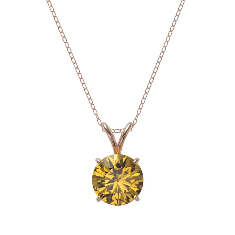 REF-285X2T -36807 ---- 1.53 CTW Certified Intense Yellow SI Diamond Solitaire Necklace 10K Rose Gold ---- Luxury Designer Brand Necklace Appraised at $20,900 Certificate Number US36807 10k Rose gold, Necklace Size is 16 Incehs, Necklace measuring approx. Uniform, weighing in total approx. 2.2 grams. Made in the USA and is stamped 10k, Main stone 1.53 carat total weight containing 1 pieces of Intense Fancy Yellow color with SI quality Round shape cut Diamond , Stone #2 carat total weight containing pieces of color with quality shape cut