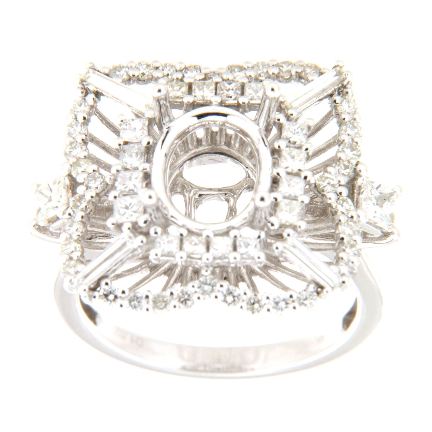 REF-195X3R - JF416313 ---- 1.53 CTW White Round Diamond & Baguette Semi Mount Ring 14K White Gold