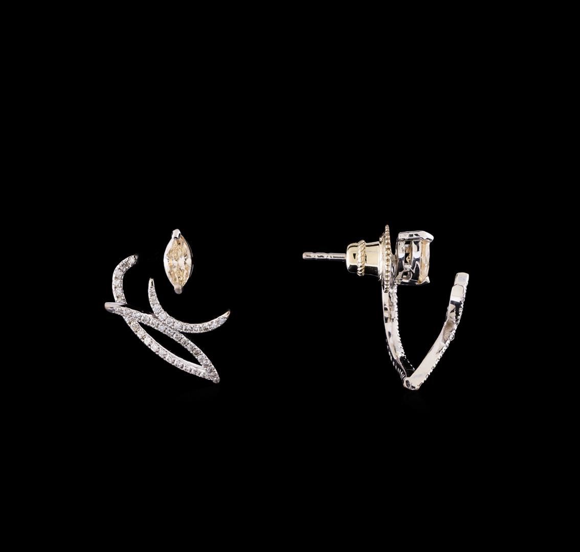 One pair electronically tested 14KT white gold lady's combination cast & assembled fashion earrings with earring jackets with heavy friction backs with a bright polish finish. Identified with markings of "14K". Condition is new, good workmanship. Containing: Two prong set marquise shaped cut diamonds, measuring 7.30 x 3.96 x 2.69mm (depth est.) approximate total weight of 2 Stones = 0.97ct. Graded in the setting. Clarity: SI-2 to I-1. Color: O - P. Cut Good Ninety round brilliant cut diamonds, measuring 1.20 - 1.15 x 0.73mm (depth est.) approximate total weight of 90 Stones = 0.56ct. Graded in the setting. Clarity: SI-1 to SI-2. Color: G - Good. Total Weight of Diamonds 1.53ct. Total Weight of Earrings With Earring Jackets 5.80gm. GAS Appraised at $4,945.00.