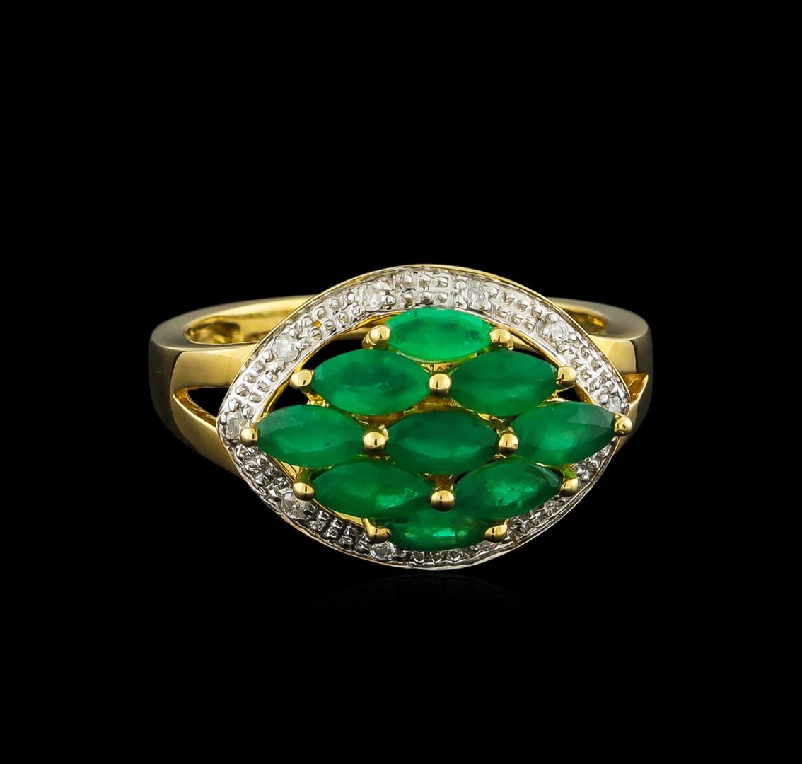 One ring featuring: 10KT yellow gold weighing 3.04 grams containing nine emeralds with a total weight of 1.53ct and 10 round diamonds with a total weight of 0.08ct.