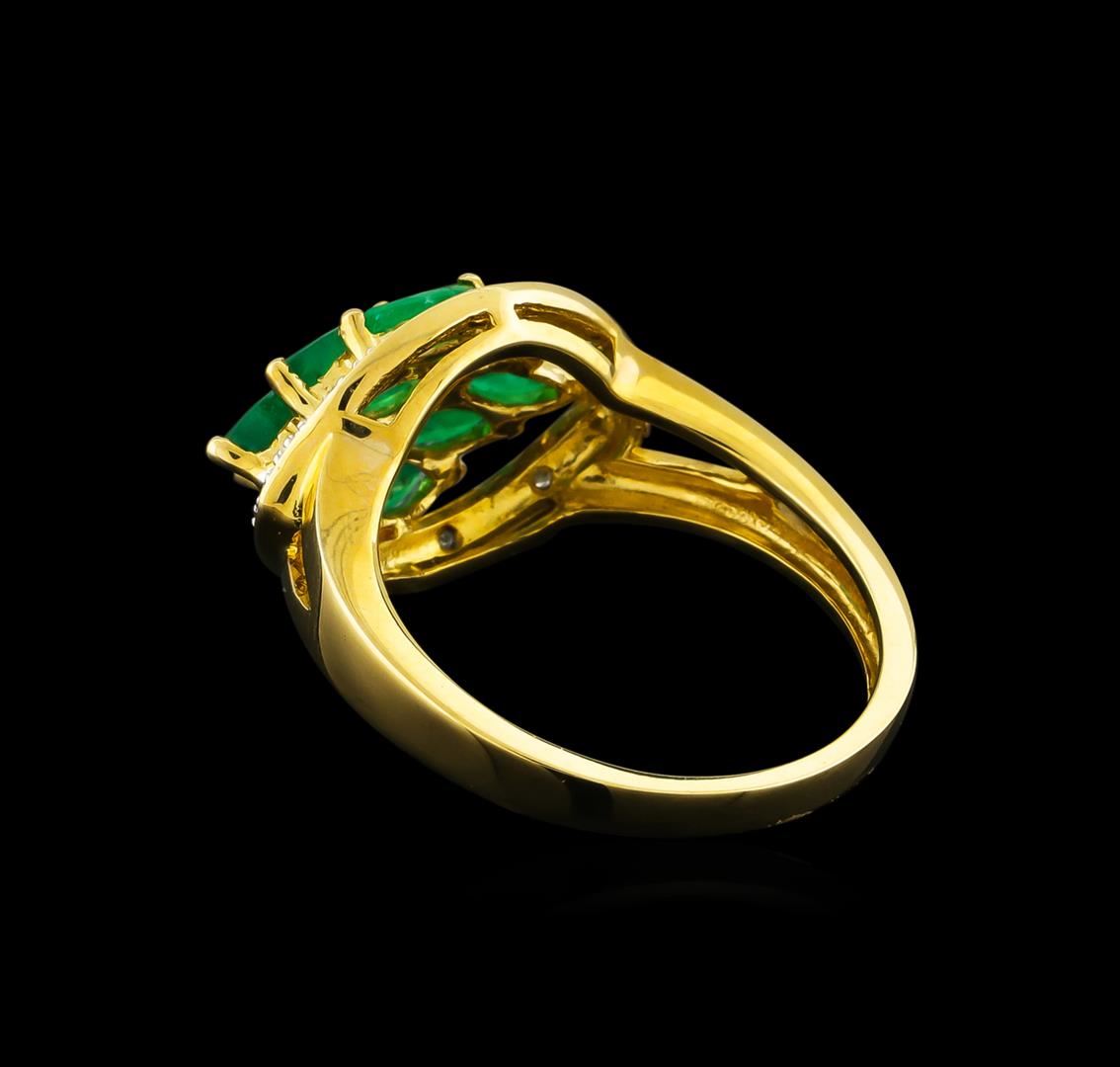 One ring featuring: 10KT yellow gold weighing 3.04 grams containing nine emeralds with a total weight of 1.53ct and 10 round diamonds with a total weight of 0.08ct.