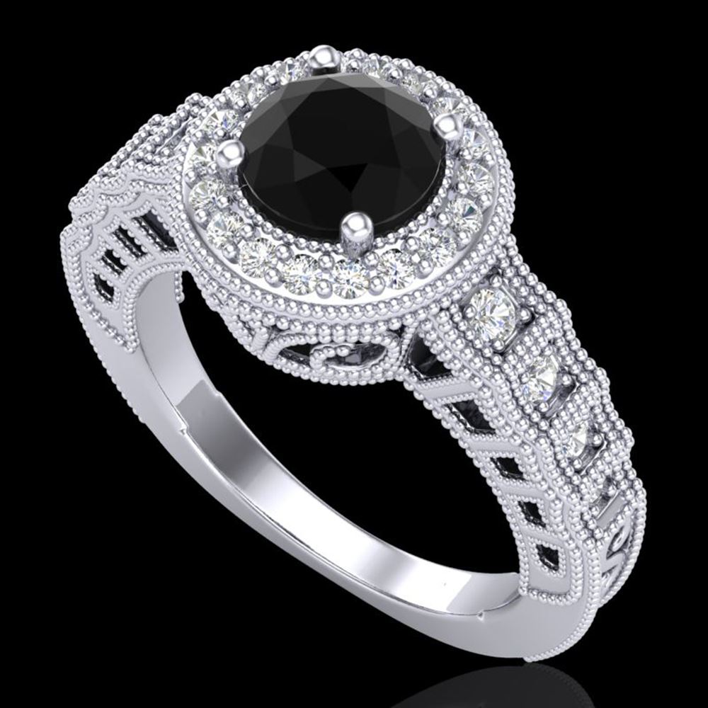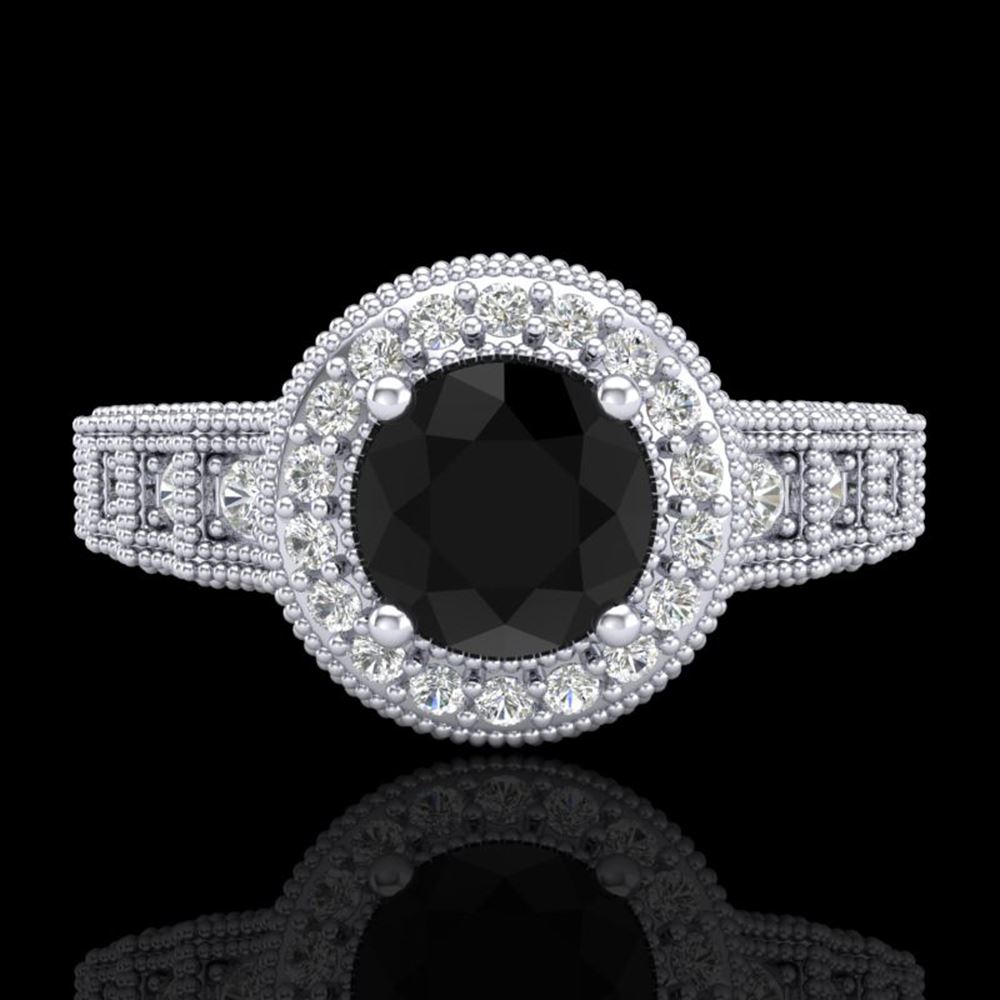 REF-127F3M - SKU: 37646 ---- 1.53 ctw Fancy Black Diamond Engagment Art Deco Ring 18k White Gold