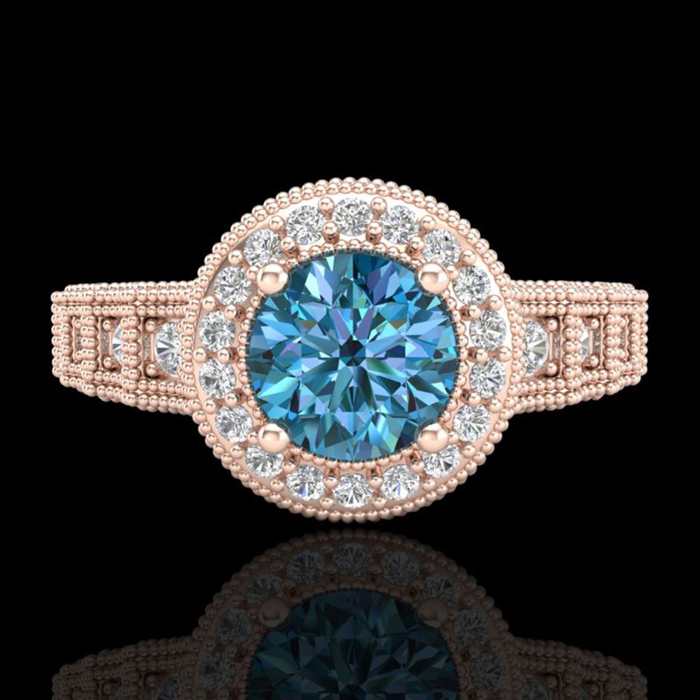 SKU: 37650 ---- 1.53 ctw Fancy Intense Blue Diamond Art Deco Ring 18k Rose Gold