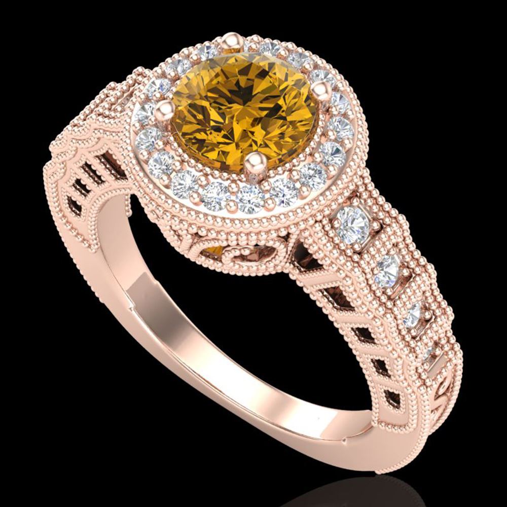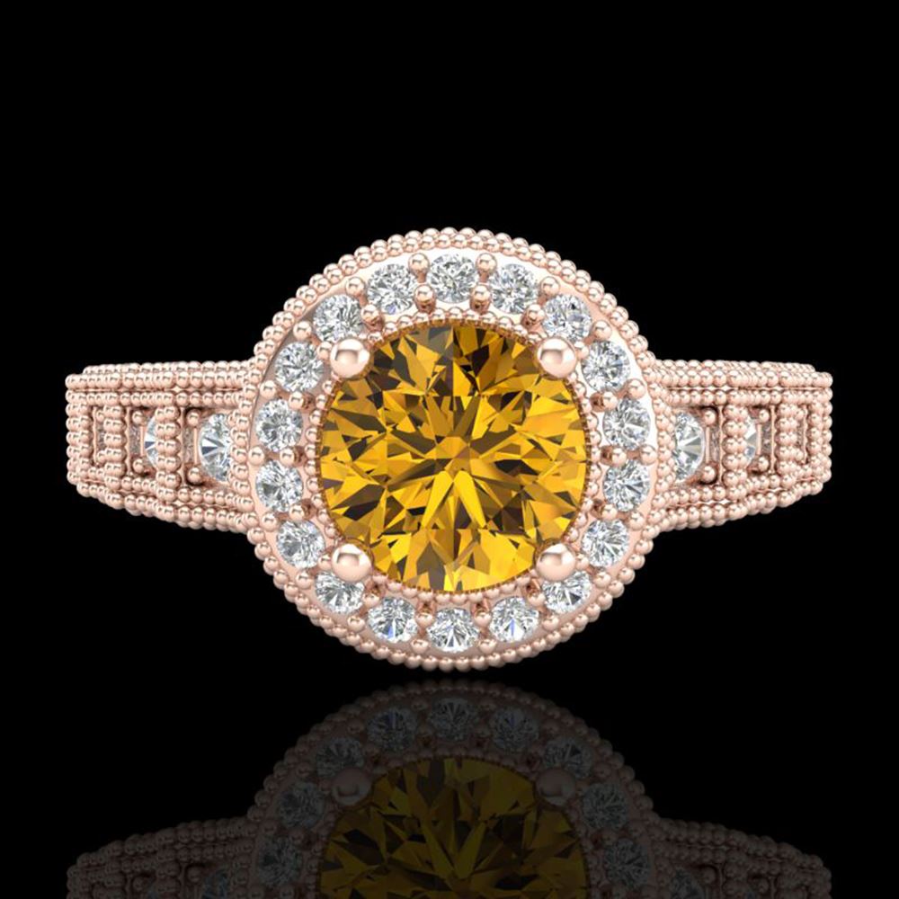 REF-327X3A - SKU: 37652 ---- 1.53 ctw Intense Fancy Yellow Diamond Art Deco Ring 18k Rose Gold