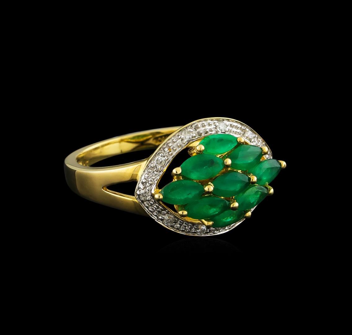 One ring featuring: 10KT yellow gold weighing 3.04 grams containing nine emeralds with a total weight of 1.53ct and 10 round diamonds with a total weight of 0.08ct.