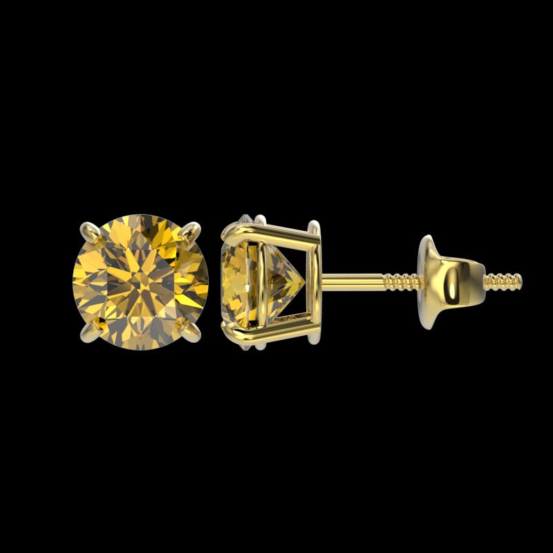 1.54 CTW Certified Intense Yellow SI Diamond Solitaire Stud Earrings 10K Yellow Gold ---- Luxury Designer Brand Earring Appraised Retail Price at $9,350 ---- SKU Number US36621 10k Yellow gold Earring Size is Larger, Earring measuring approx. Uniform, weighing in total approx. 1.8 grams. Made in the USA and is stamped 10k, Main stone 1.54 carat total weight containing 2 pieces of Intense Fancy Yellow color with SI quality Round shape cut Diamond , Stone #2 carat total weight containing pieces of color with quality shape cut