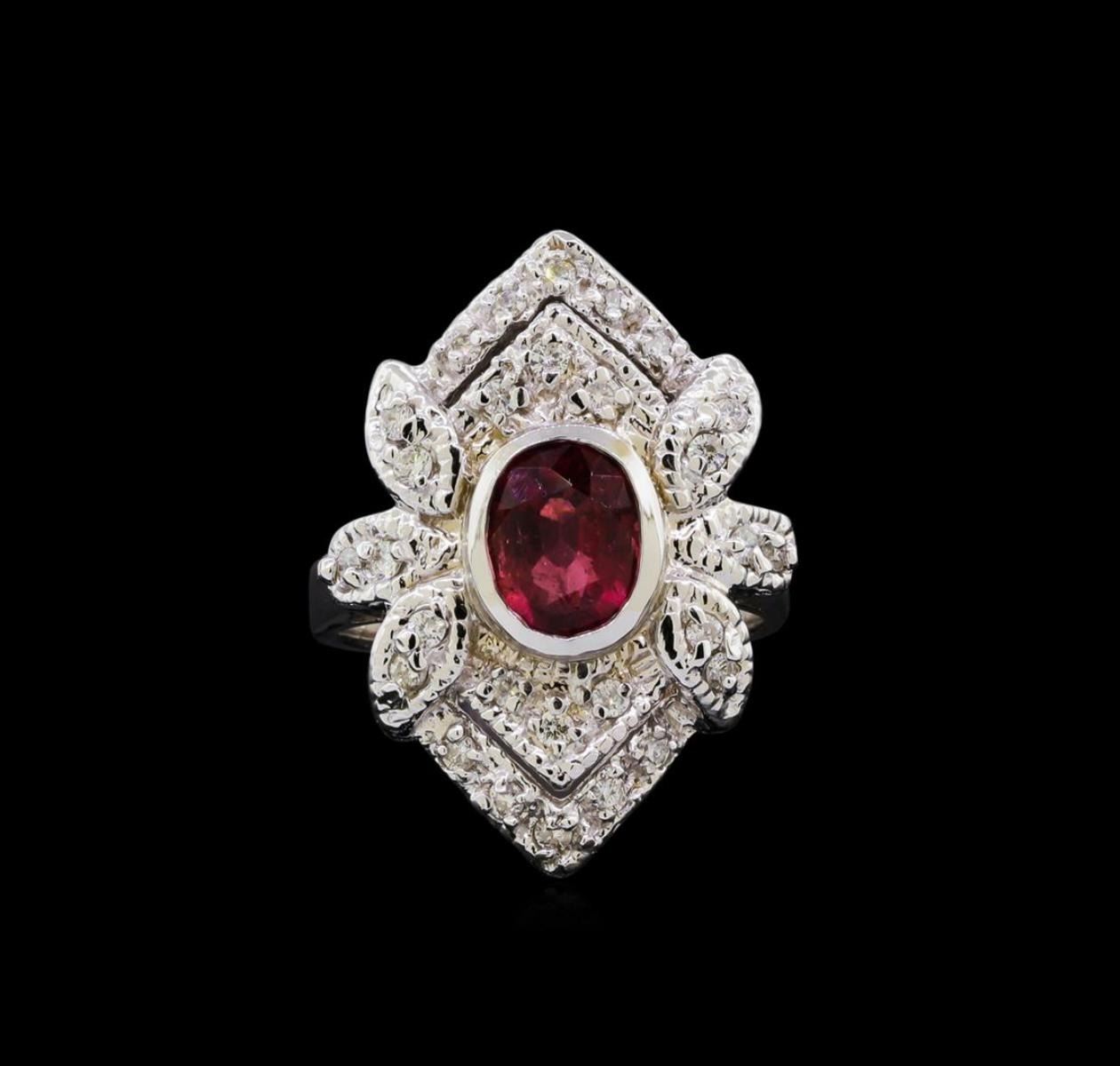 One ring featuring: 14KT white gold weighing 7.33 grams containing one pink tourmaline center stone with a total weight of 1.54ct and diamonds with a total weight of 0.39ct.