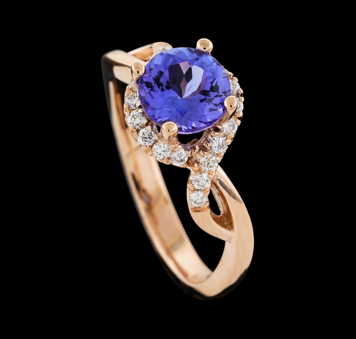 One Ring : 14KT rose gold with a total weight of 4.4gm featuring Tanzanite weighing 1.54ct and diamonds weighing 0.24ctw.