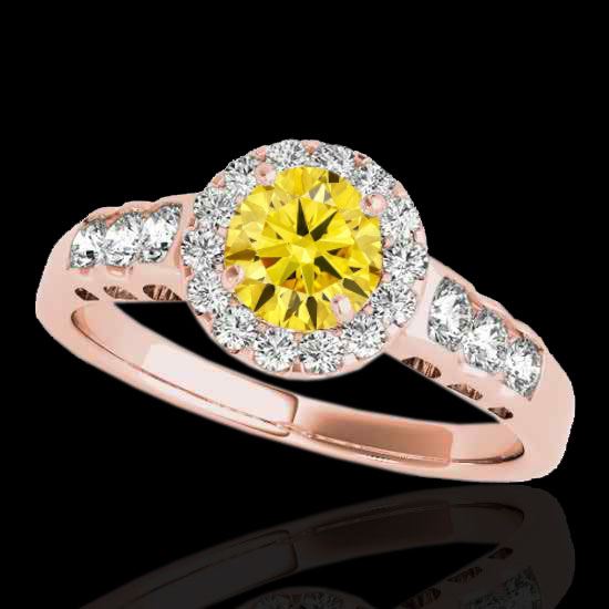 REF-180F2N -34368 ---- 1.55 CTW Certified Si/I Fancy Intense Yellow Diamond Solitaire Halo Ring 10K Rose Gold ---- Luxury Designer Brand Ring Appraised at $11,900 Certificate Number US34368 10k Rose gold, Ring Size is 7, Ring measuring approx. Uniform, weighing in total approx. 4.8 grams. Made in the USA and is stamped 10k, Main stone 1 carat total weight containing 1 pieces of Intense Fancy Yellow color with SI quality Round shape cut Diamond , Stone #2 0.55 carat total weight containing 20 pieces of H-I color with VS/SI quality Round shape cut Diamond