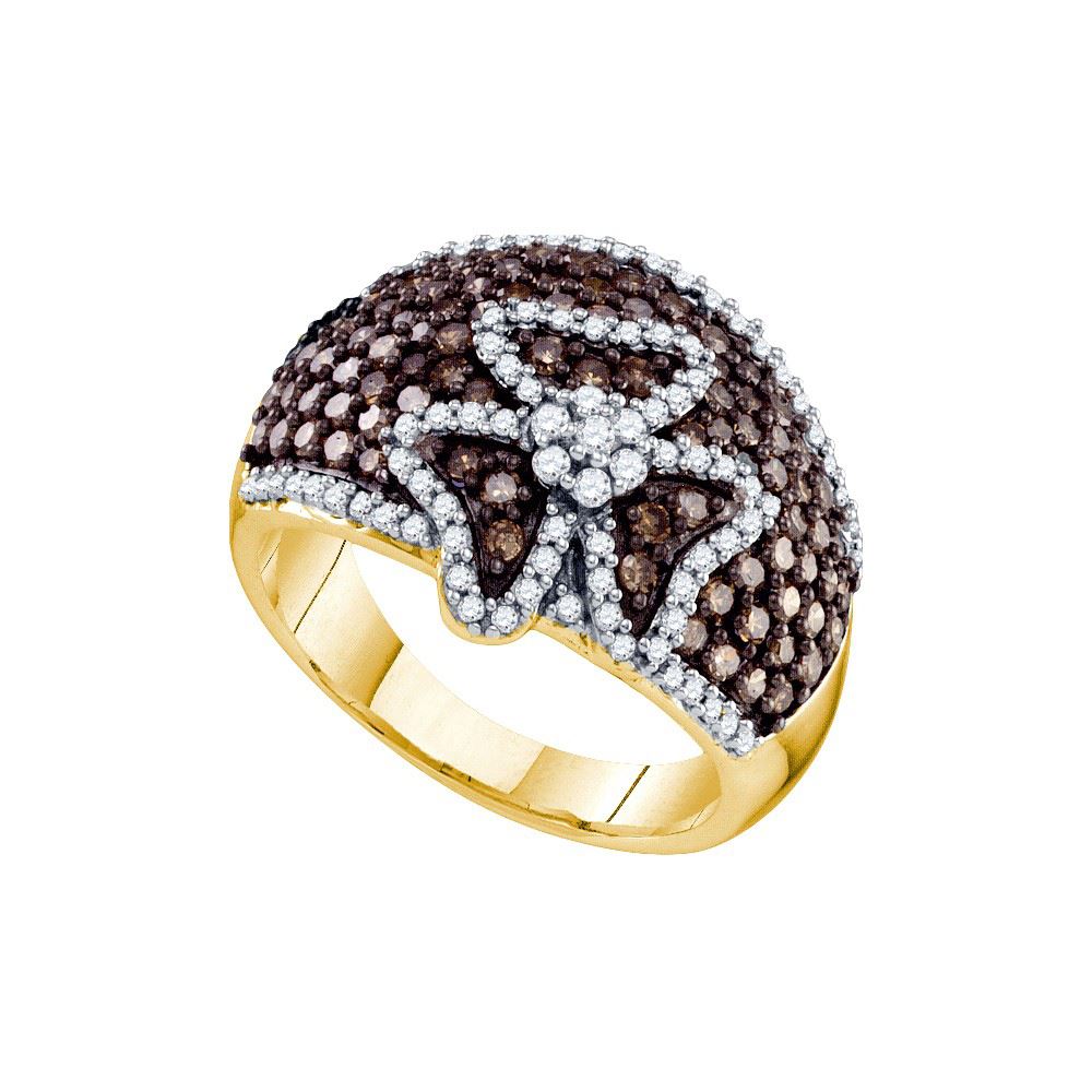 REF-99W9H ---- 1.55 CTW Cognac-brown Colored Diamond Cocktail Ribbon Bow Ring 10K Yellow Gold - SKU: GD72952