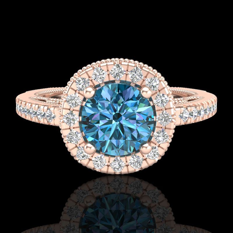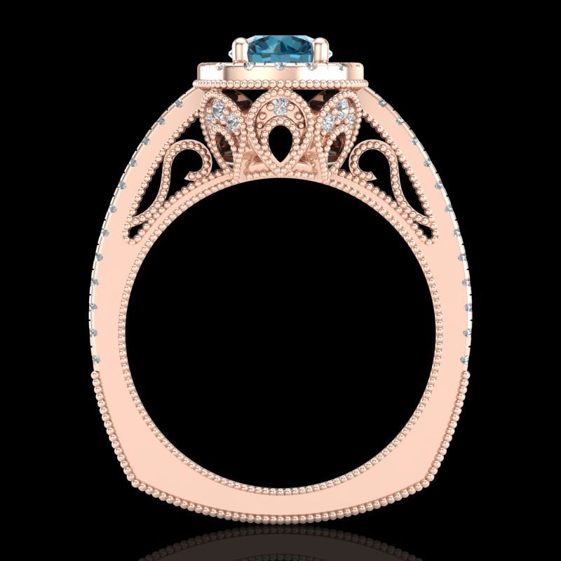 REF-178A2X -37986 ---- 1.55 CTW Fancy Intense Blue Diamond Solitaire Art Deco Ring 18K Rose Gold ---- Luxury Designer Brand Ring Appraised at $10,800 Certificate Number US37986 18k Rose gold, Ring Size is 7, Ring measuring approx. Uniform, weighing in total approx. 5.6 grams. Made in the USA and is stamped 18k, Main stone 0.77 carat total weight containing 1 pieces of Intense Fancy Blue color with SI quality Round shape cut Diamond , Stone #2 0.78 carat total weight containing 54 pieces of H-I color with VS/SI quality Round shape cut Diamond