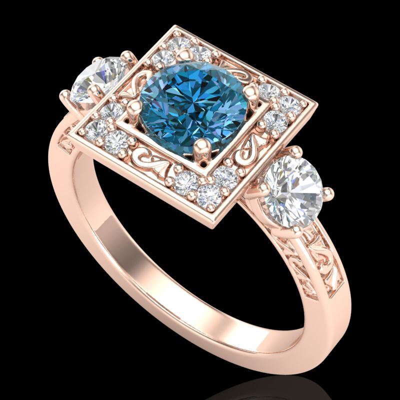 REF-178M2H -38175 ---- 1.55 CTW Intense Blue Diamond Solitaire Art Deco 3 Stone Ring 18K Rose Gold ---- Luxury Designer Brand 3 stone ring Appraised at $10,800 Certificate Number US38175 18k Rose gold, 3 stone ring Size is 7, 3 stone ring measuring approx. Uniform, weighing in total approx. 8 grams. Made in the USA and is stamped 18k, Main stone 0.77 carat total weight containing 1 pieces of Intense Fancy Blue color with SI quality Round shape cut Diamond , Stone #2 0.55 carat total weight containing 2 pieces of H-I color with VS/SI quality Round shape cut Diamond , Stone #3 0.23 carat total weight containing 12 pieces of G-H color with VS/SI quality Round shape cut Diamond