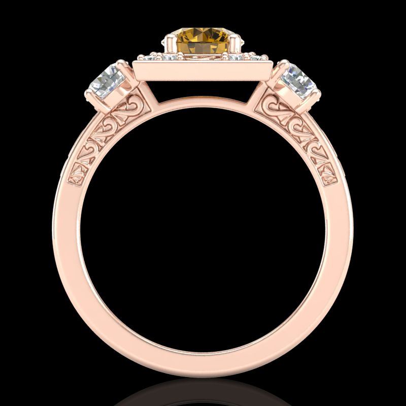 38177 - REF-178V2Y ---- 1.55 CTW Intense Fancy Yellow Diamond Art Deco 3 Stone Ring 18K Rose Gold ---- Luxury Designer Brand 3 stone ring Appraised at $11,750 Certificate Number US38177 18k Rose gold, 3 stone ring Size is 7, 3 stone ring measuring approx. Uniform, weighing in total approx. 8 grams. Made in the USA and is stamped 18k, Main stone 0.77 carat total weight containing 1 pieces of Intense Fancy Yellow color with SI quality Round shape cut Diamond , Stone #2 0.55 carat total weight containing 2 pieces of H-I color with VS/SI quality Round shape cut Diamond , Stone #3 0.23 carat total weight containing 12 pieces of G-H color with VS/SI quality Round shape cut Diamond