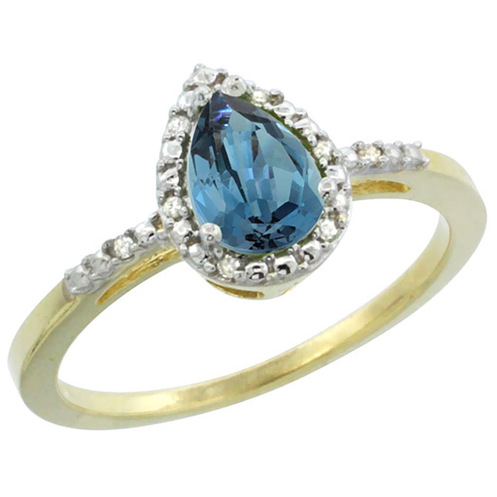 REF-21M2A - SKU: SC-CY905152 ---- 1.55 CTW London Blue Topaz & Diamond Ring 10K Yellow Gold