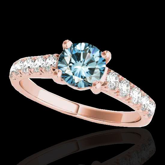 REF-207N3Y -35495 ---- 1.55 CTW Si Certified Fancy Blue Diamond Solitaire Ring 10K Rose Gold ---- Luxury Designer Brand Ring Appraised at $12,550 Certificate Number US35495 10k Rose gold, Ring Size is 7, Ring measuring approx. Uniform, weighing in total approx. 3.4 grams. Made in the USA and is stamped 10k, Main stone 1.25 carat total weight containing 1 pieces of Intense Fancy Blue color with SI quality Round shape cut Diamond , Stone #2 0.3 carat total weight containing 10 pieces of H-I color with VS/SI quality Round shape cut Diamond