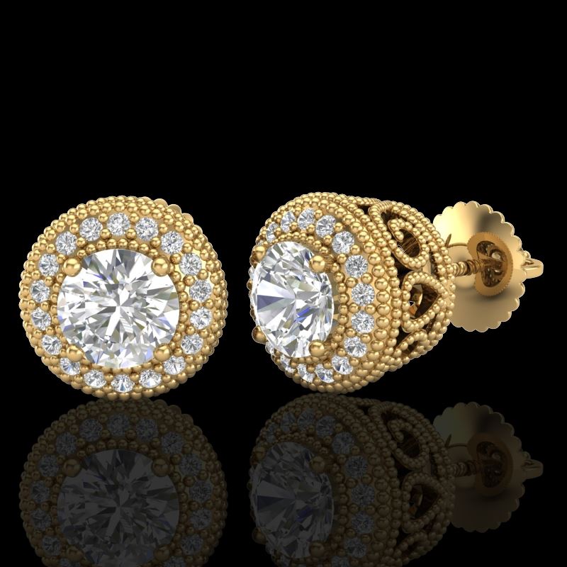 REF-259W3F -36964 ---- 1.55 CTW VS/SI Diamond Solitaire Art Deco Stud Earrings 18K Yellow Gold ---- Luxury Designer Brand Earring Appraised at $14,250 Certificate Number US36964 18k Yellow gold, Earring Size is Larger, Earring measuring approx. Uniform, weighing in total approx. 7 grams. Made in the USA and is stamped 18k, Main stone 1.2 carat total weight containing 2 pieces of H-J color with VS/SI quality Round shape cut Diamond , Stone #2 0.35 carat total weight containing 36 pieces of H-I color with VS/SI quality Round shape cut Diamond
