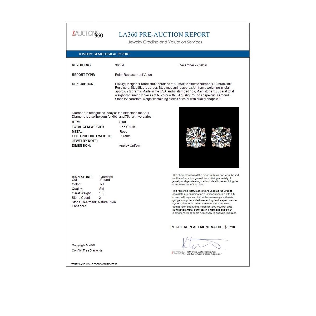 REF-127F5M - SKU: 36604 ---- 1.55 ctw Certified Quality Diamond Stud Earrings 10k Rose Gold