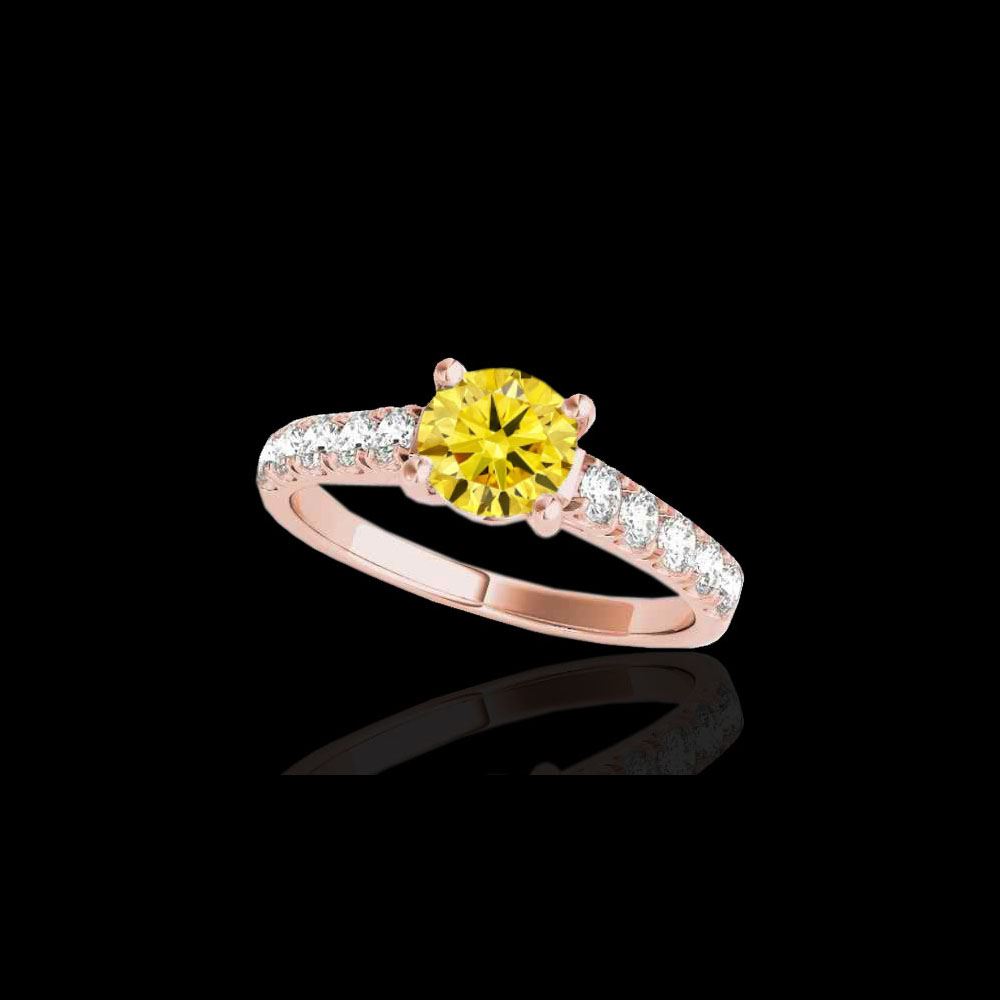 1.55 ctw Certified SI/I Fancy Intense Yellow Diamond Ring 10K Rose Gold