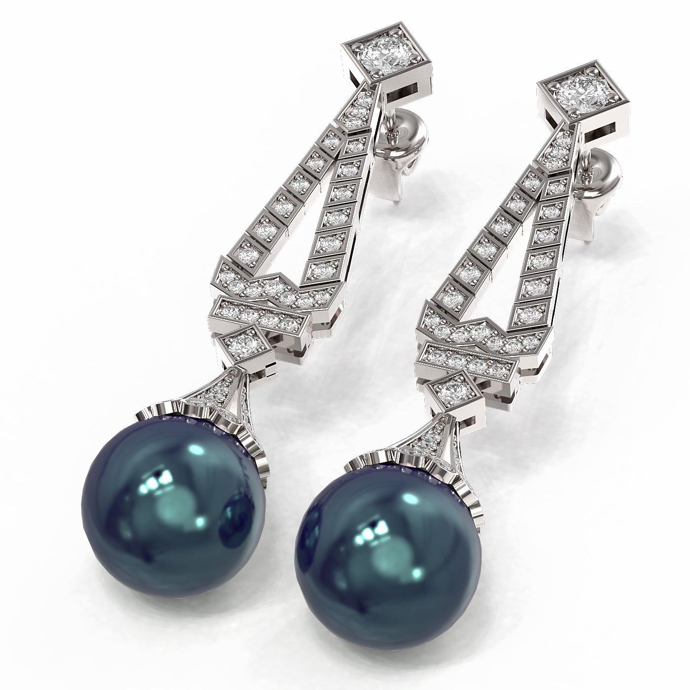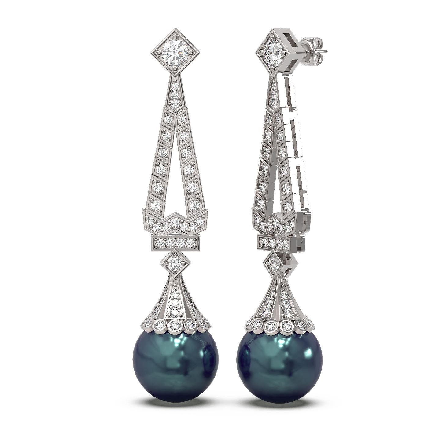 REF-224M4G - SKU: 54950 ---- 1.55 ctw Diamond & Pearl Earrings 18K White Gold