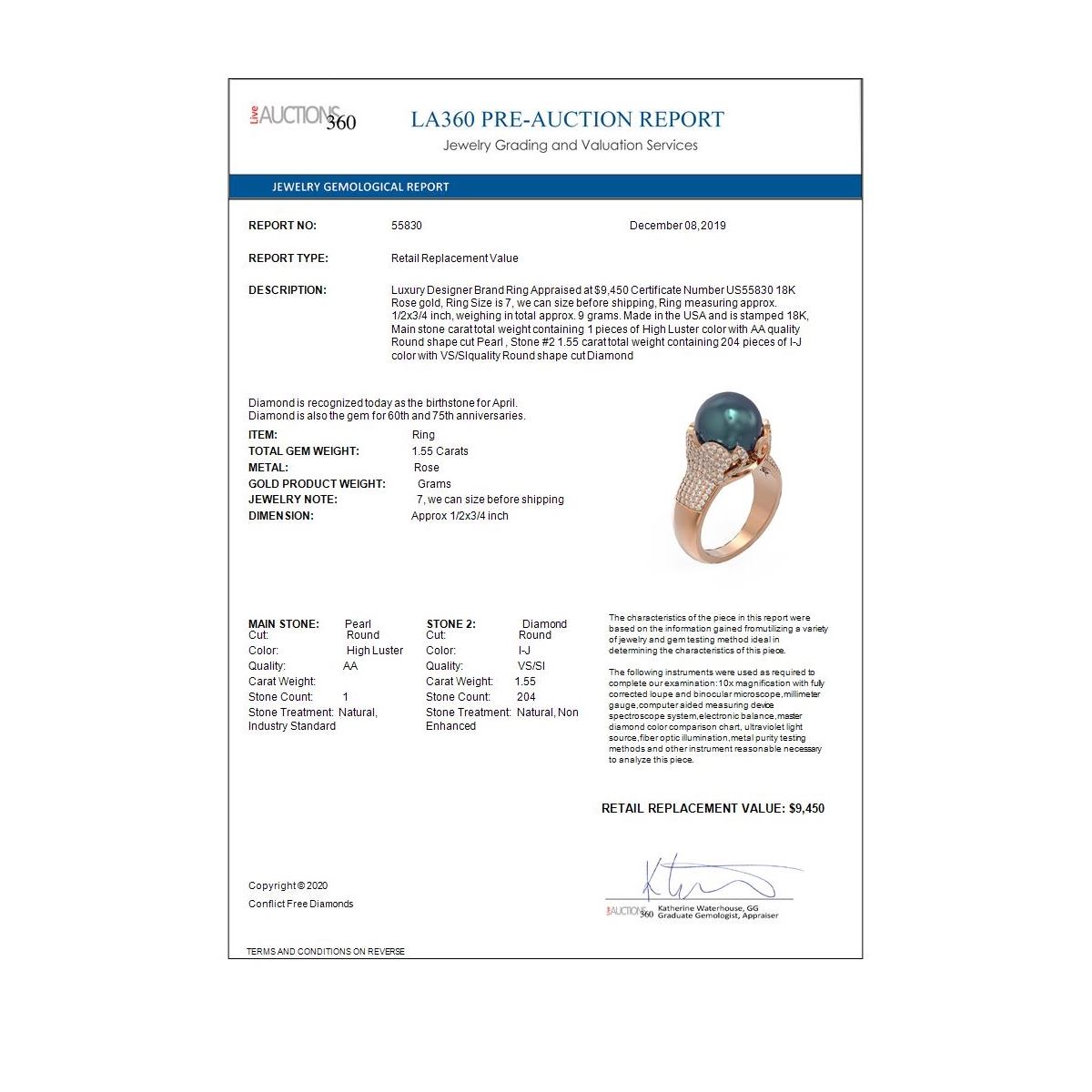 REF-191G3W - SKU: 55830 ---- 1.55 ctw Diamond & Pearl Ring 18K Rose Gold