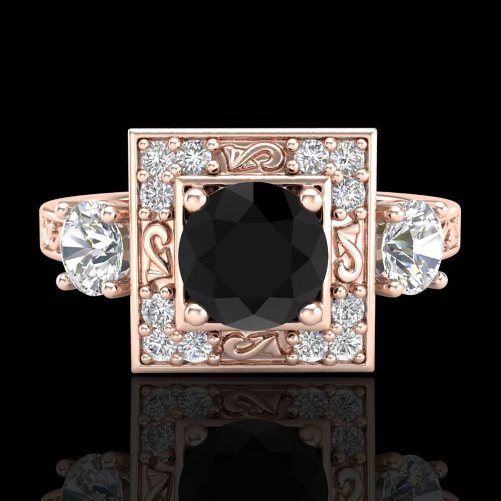 SKU: 38172 ---- 1.55 ctw Fancy Black Diamond Art Deco 3 Stone Ring 18k Rose Gold