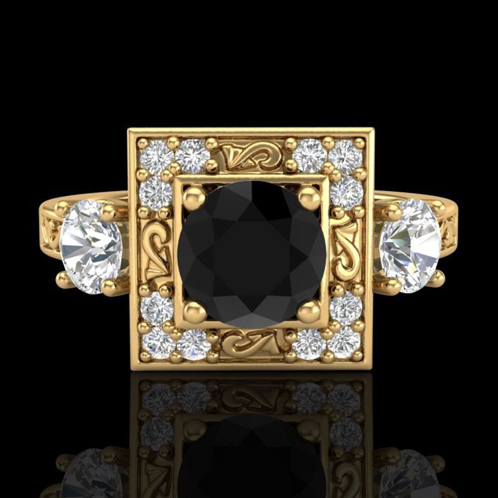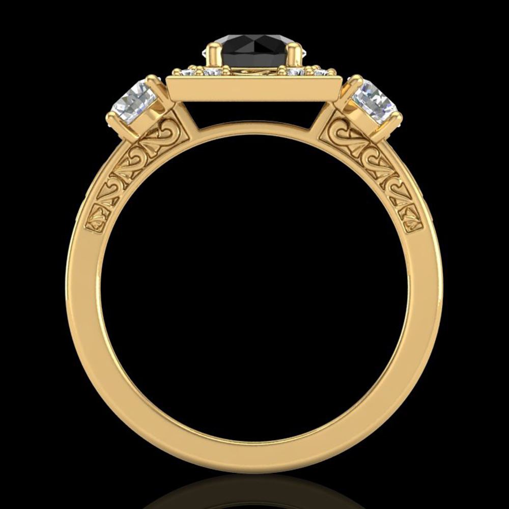 REF-149W3H - SKU: 38173 ---- 1.55 ctw Fancy Black Diamond Art Deco 3 Stone Ring 18k Yellow Gold