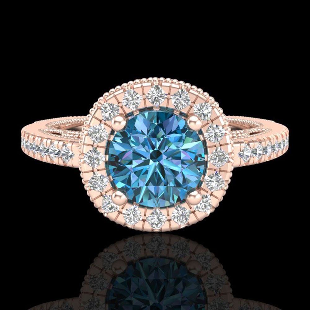 REF-178W2H - SKU: 37986 ---- 1.55 ctw Fancy Intense Blue Diamond Art Deco Ring 18k Rose Gold