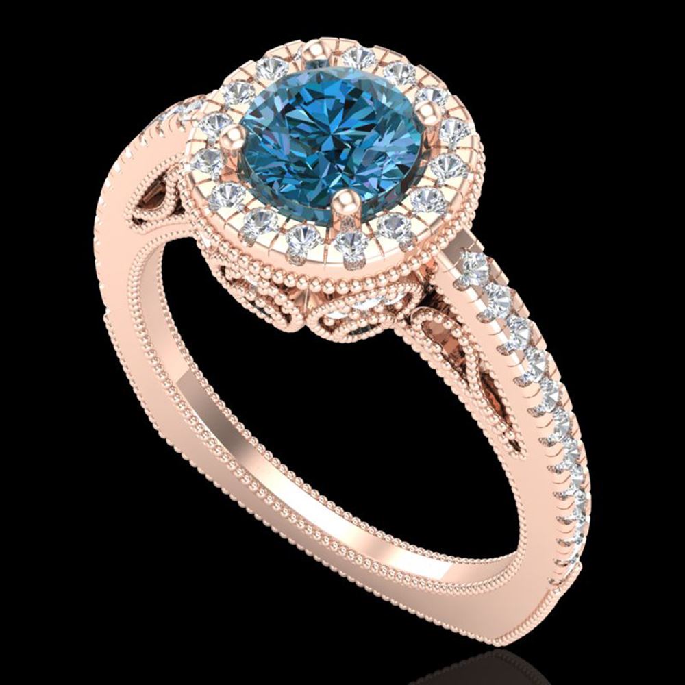 REF-178W2H - SKU: 37986 ---- 1.55 ctw Fancy Intense Blue Diamond Art Deco Ring 18k Rose Gold